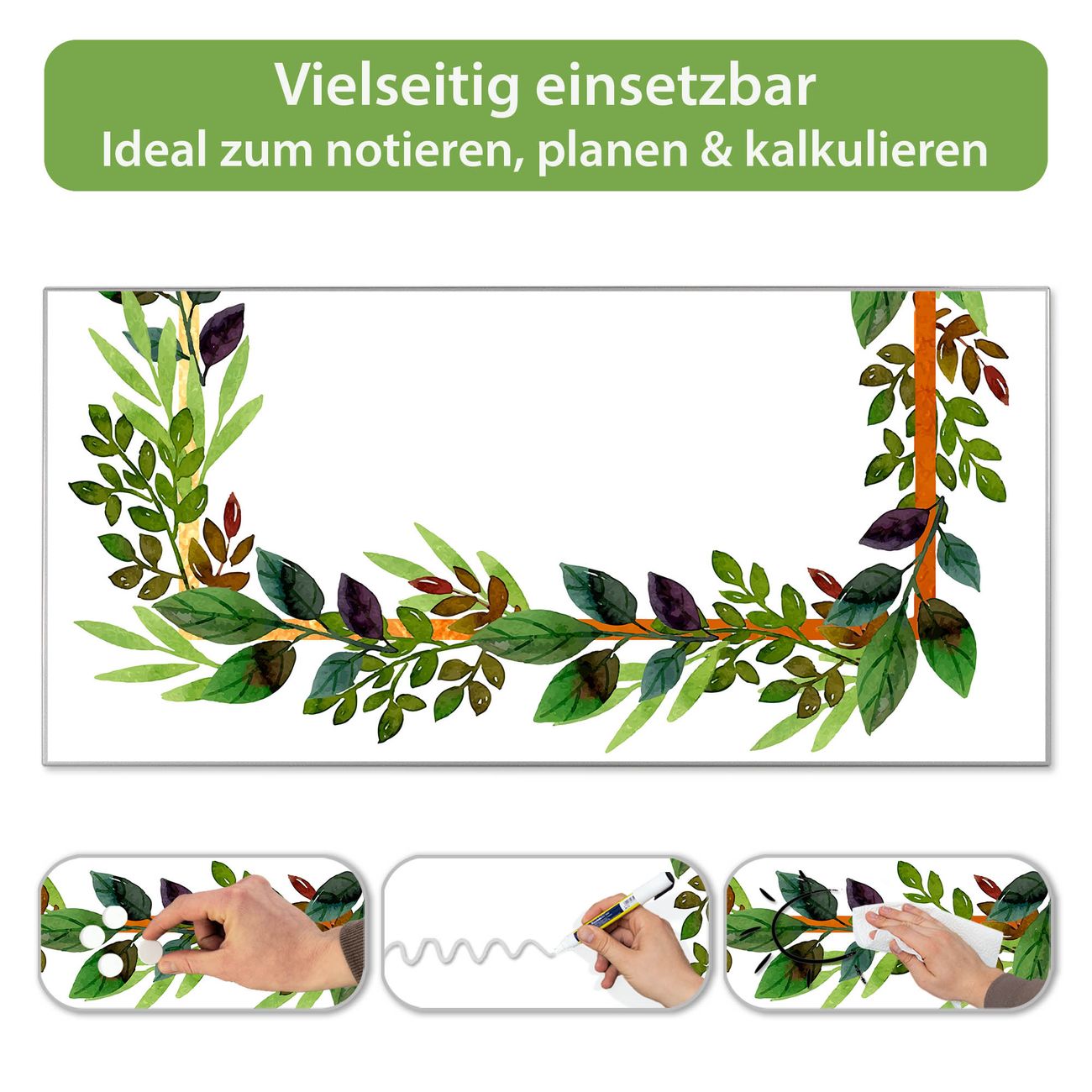 Metall Magnettafel beschreibbar 78x37cm Motiv Blätterrahmen 2