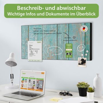 Metall Magnettafel beschreibbar 78x37cm Motiv Blaue Planken