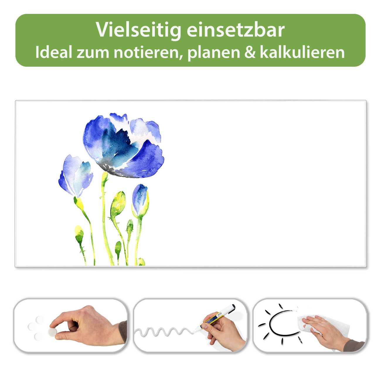 Metall Magnettafel beschreibbar 78x37cm Motiv Blauer Mohn