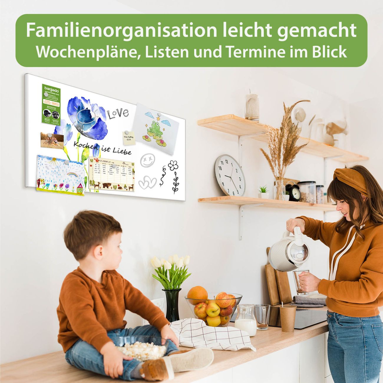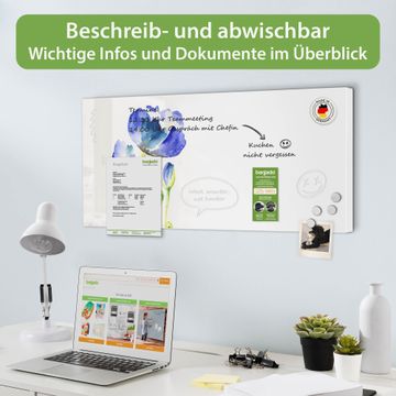 FUNKTION: Die banjado Magnettafel 78x37 cm im Design Motiv Blauer Mohn vereint Funktionalität und modernes Wohndesign auf stilvolle Weise. Diese hochwertige Magnetwand aus Metall hilft Ihnen dabei, Notizen, Fotos, Termine, Einkaufslisten oder Rezepte übersichtlich zu organisieren. Als praktisches Memoboard sorgt sie für Struktur im Alltag und setzt gleichzeitig einen dekorativen Akzent an Ihrer Wand. DESIGN: Die Metalltafel besteht aus robustem, lackiertem Stahl und ist mit allen handelsüblichen Magneten nutzbar. Besonders praktisch ist die beschreibbare Oberfläche. Sie können die Magnettafel ganz einfach mit Kreidestiften beschriften und die Inhalte bei Bedarf mit einem feuchten Tuch wieder entfernen. So eignet sich das Memoboard ideal für Wochenpläne, Menüpläne, To Do Listen oder kreative Botschaften. DETAILS: Mit ihrem großzügigen Querformat von 78x37 cm bietet die Magnettafel ausreichend Platz für Ihre Organisation. Das Motiv Motiv Blauer Mohn bringt eine warme, natürliche Optik in Küche, Flur, Büro oder Homeoffice und wirkt auch ohne Magnete oder Beschriftung wie ein modernes Wandbild. NUTZEN: Auf der Rückseite befinden sich vorgefertigte Löcher für eine schnelle und unkomplizierte Wandmontage. Jede banjado Magnettafel wird in Deutschland gefertigt und steht für Qualität, Langlebigkeit und liebevolle Verarbeitung. Dieses beschreibbare Memoboard ist die perfekte Kombination aus Metalltafel, Designobjekt und praktischer Magnetwand für Ihren Alltag. BANJADO: Wir sind ein kleines Team aus dem Herzen von Sachsen. Wir fertigen alle Artikel von Hand für Sie an, Sie erhalten keine preiswerte Importware. Auf Wunsch können Sie auch Ihr eigenes Foto auf die Magnettafel aufbringen, schreiben Sie uns an. Herzlichst, Ihr banjado-Team
