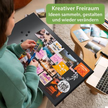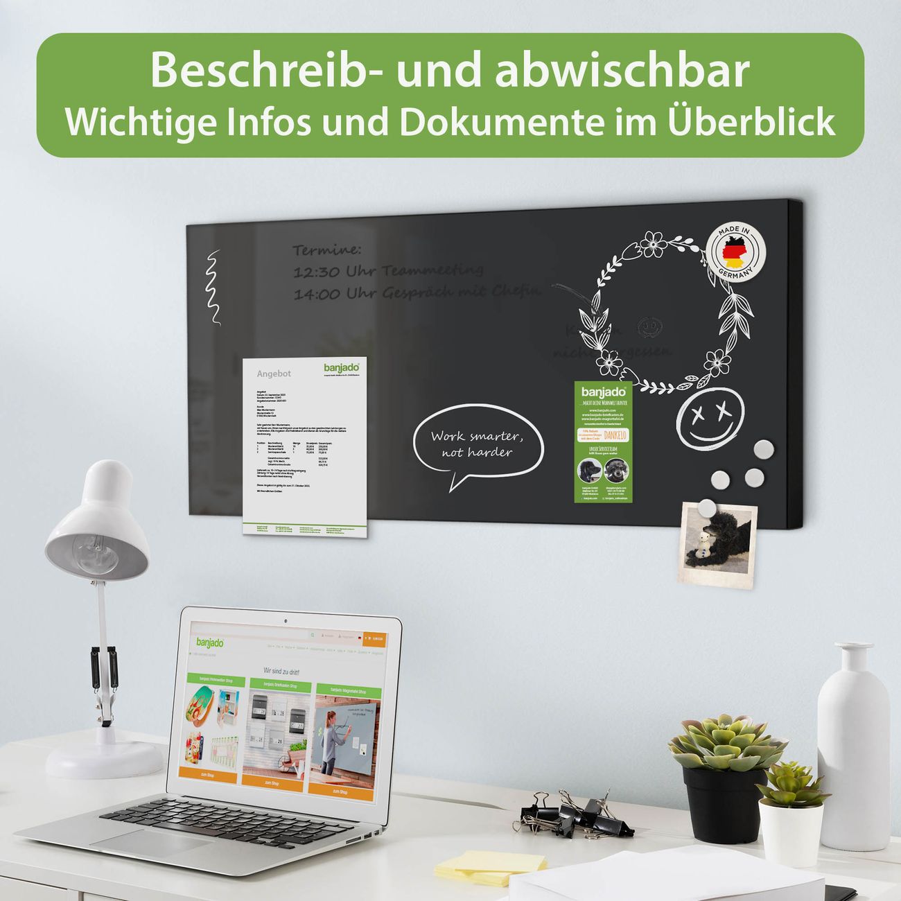 FUNKTION: Die banjado Magnettafel 78x37 cm im Design Motiv Blütenkranz vereint Funktionalität und modernes Wohndesign auf stilvolle Weise. Diese hochwertige Magnetwand aus Metall hilft Ihnen dabei, Notizen, Fotos, Termine, Einkaufslisten oder Rezepte übersichtlich zu organisieren. Als praktisches Memoboard sorgt sie für Struktur im Alltag und setzt gleichzeitig einen dekorativen Akzent an Ihrer Wand. DESIGN: Die Metalltafel besteht aus robustem, lackiertem Stahl und ist mit allen handelsüblichen Magneten nutzbar. Besonders praktisch ist die beschreibbare Oberfläche. Sie können die Magnettafel ganz einfach mit Kreidestiften beschriften und die Inhalte bei Bedarf mit einem feuchten Tuch wieder entfernen. So eignet sich das Memoboard ideal für Wochenpläne, Menüpläne, To Do Listen oder kreative Botschaften. DETAILS: Mit ihrem großzügigen Querformat von 78x37 cm bietet die Magnettafel ausreichend Platz für Ihre Organisation. Das Motiv Motiv Blütenkranz bringt eine warme, natürliche Optik in Küche, Flur, Büro oder Homeoffice und wirkt auch ohne Magnete oder Beschriftung wie ein modernes Wandbild. NUTZEN: Auf der Rückseite befinden sich vorgefertigte Löcher für eine schnelle und unkomplizierte Wandmontage. Jede banjado Magnettafel wird in Deutschland gefertigt und steht für Qualität, Langlebigkeit und liebevolle Verarbeitung. Dieses beschreibbare Memoboard ist die perfekte Kombination aus Metalltafel, Designobjekt und praktischer Magnetwand für Ihren Alltag. BANJADO: Wir sind ein kleines Team aus dem Herzen von Sachsen. Wir fertigen alle Artikel von Hand für Sie an, Sie erhalten keine preiswerte Importware. Auf Wunsch können Sie auch Ihr eigenes Foto auf die Magnettafel aufbringen, schreiben Sie uns an. Herzlichst, Ihr banjado-Team