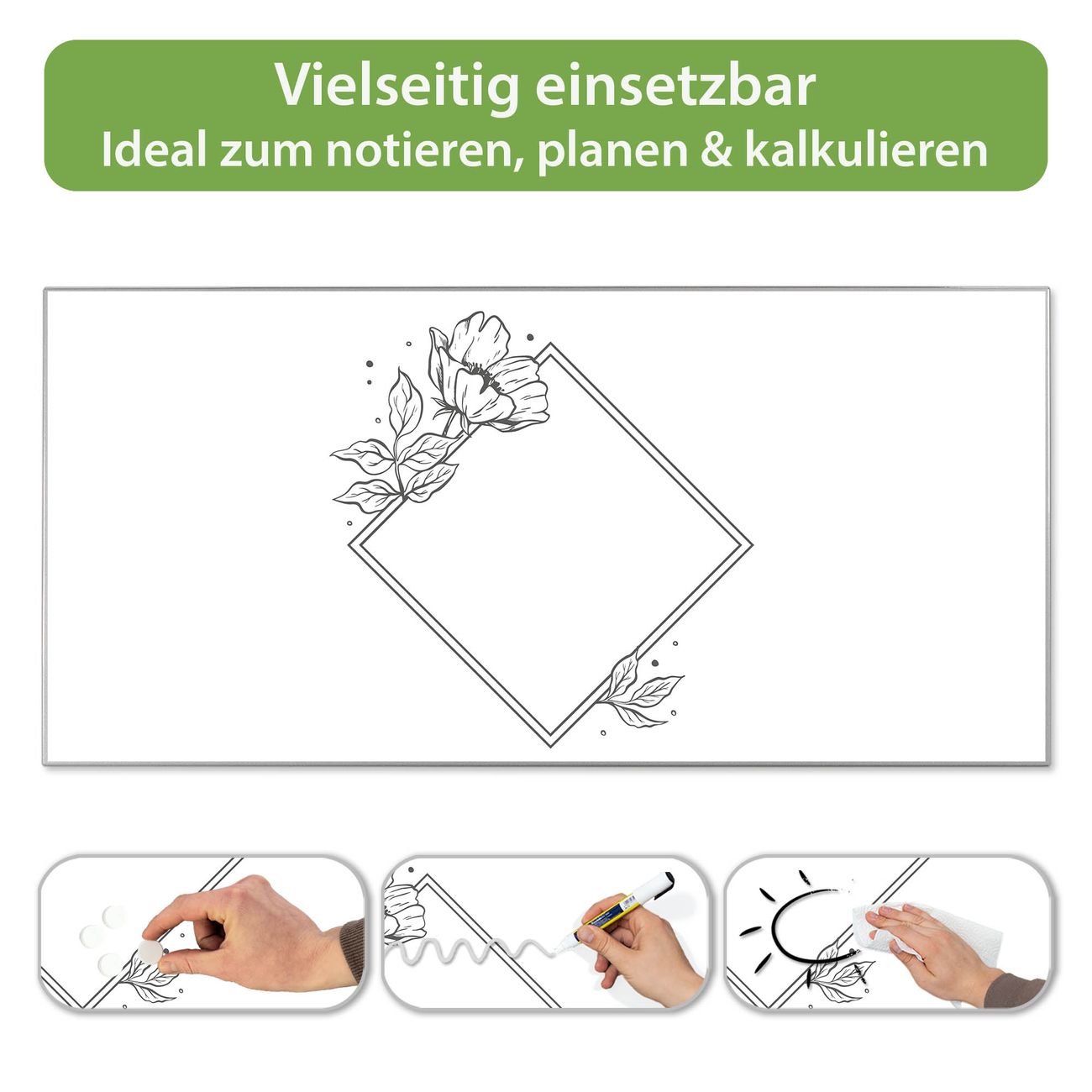 Metall Magnettafel beschreibbar 78x37cm Motiv Blütenrahmen