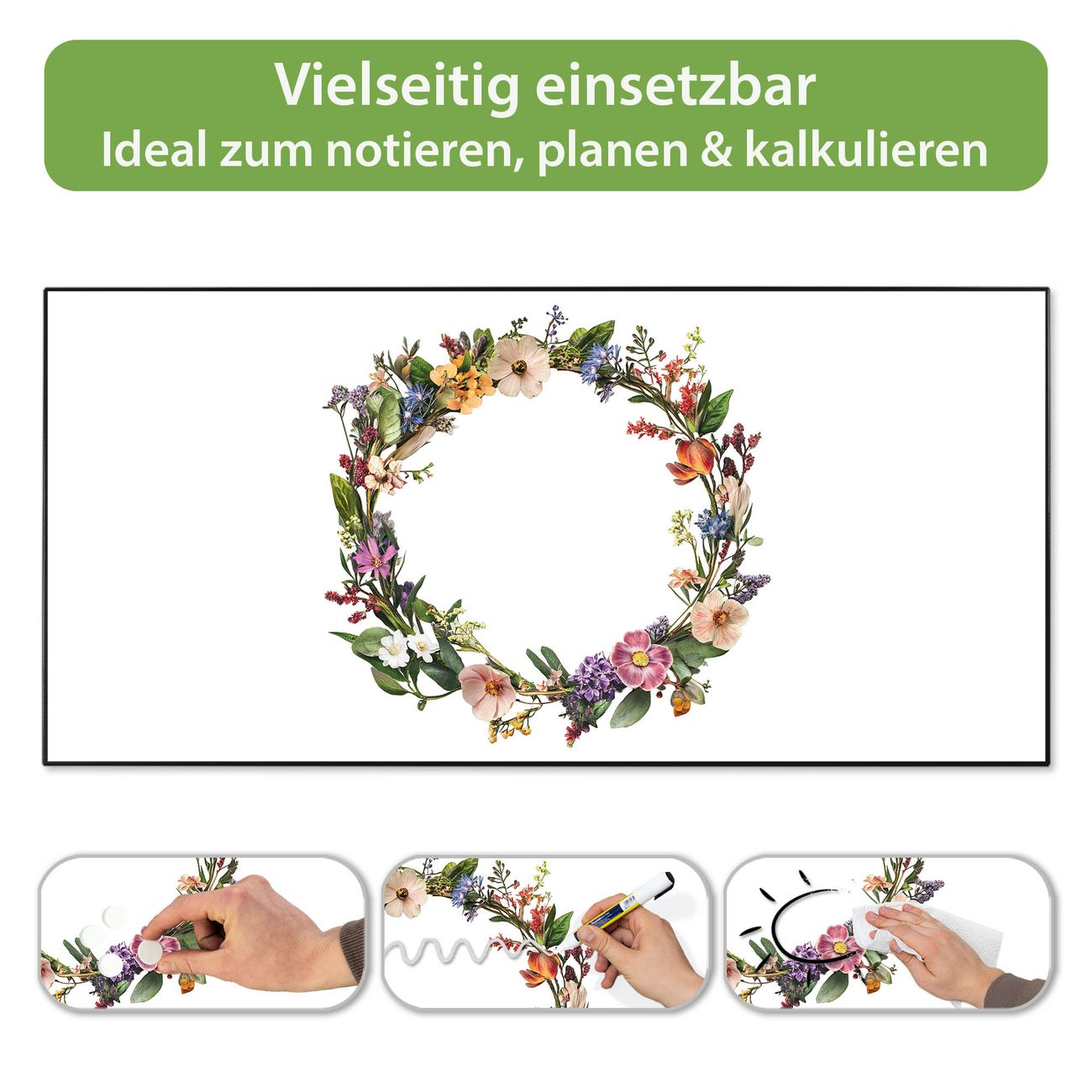 Metall Magnettafel beschreibbar 78x37cm Motiv Blumenkranz der Jahreszeiten