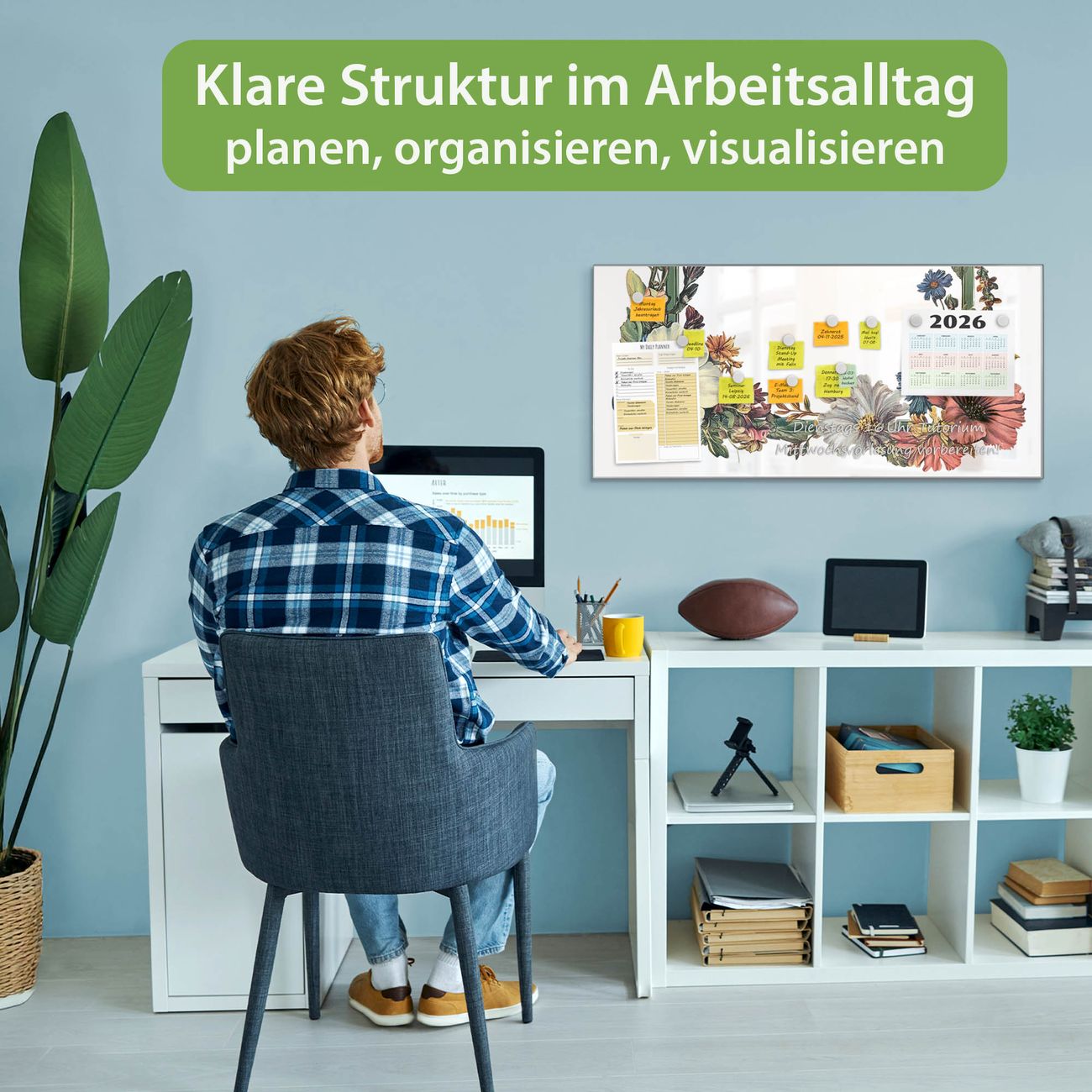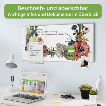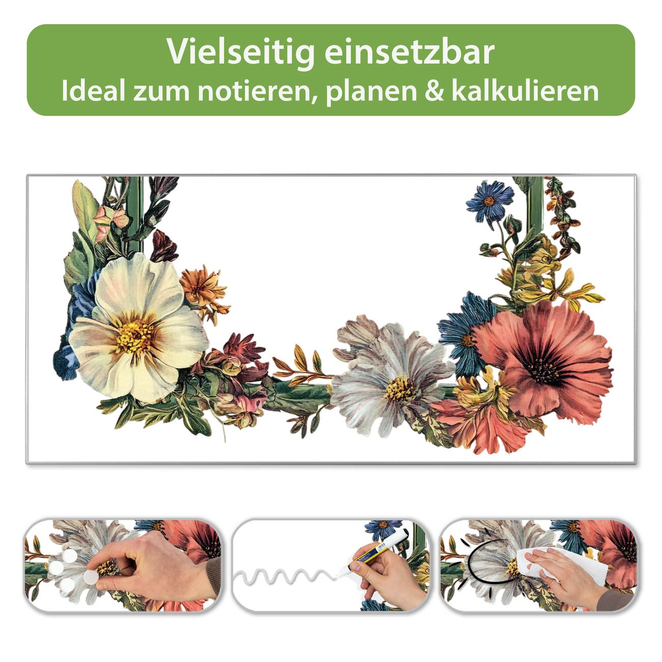 Metall Magnettafel beschreibbar 78x37cm Motiv Blumenrahmen