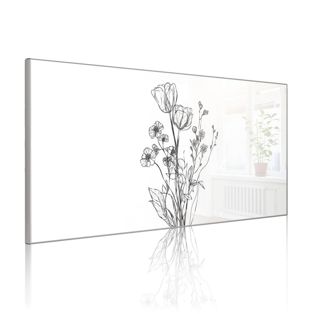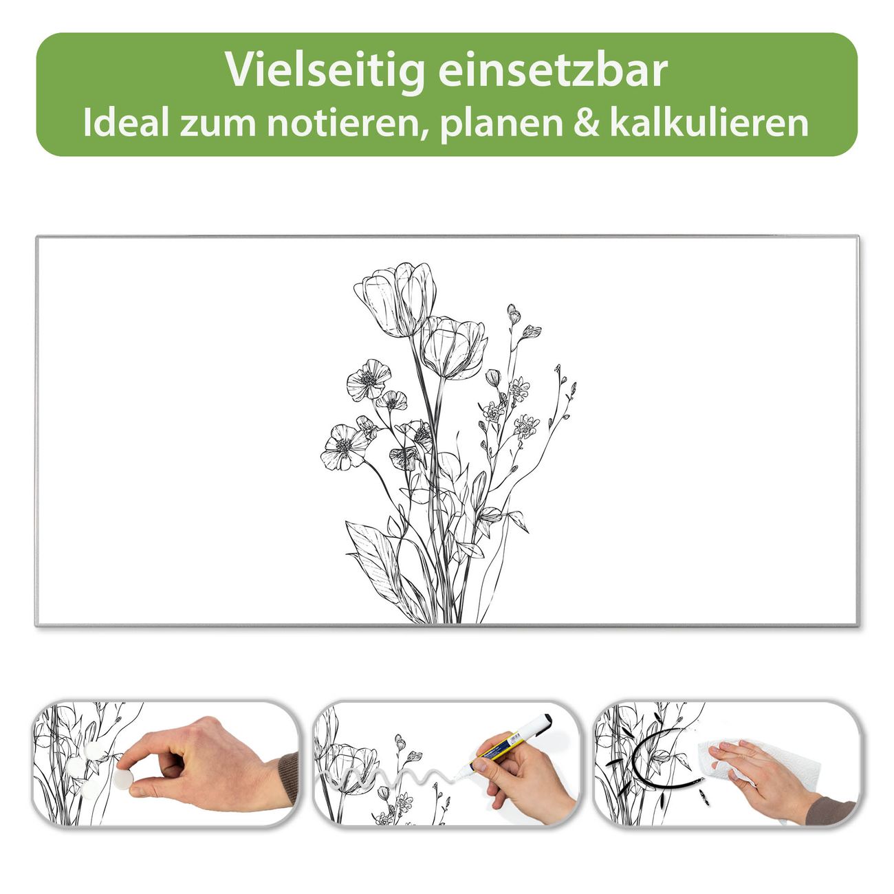 Metall Magnettafel beschreibbar 78x37cm Motiv Blumenskizze