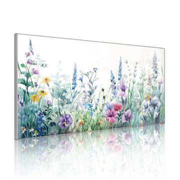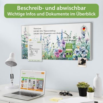 Metall Magnettafel beschreibbar 78x37cm Motiv Blumenwiese in Aquarell