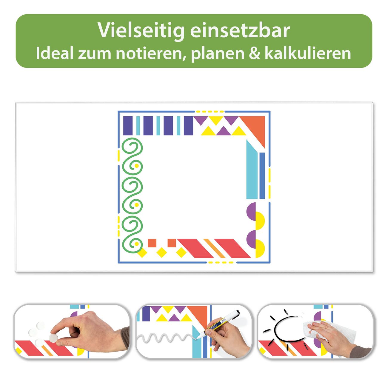 Metall Magnettafel beschreibbar 78x37cm Motiv Bunte Ecken