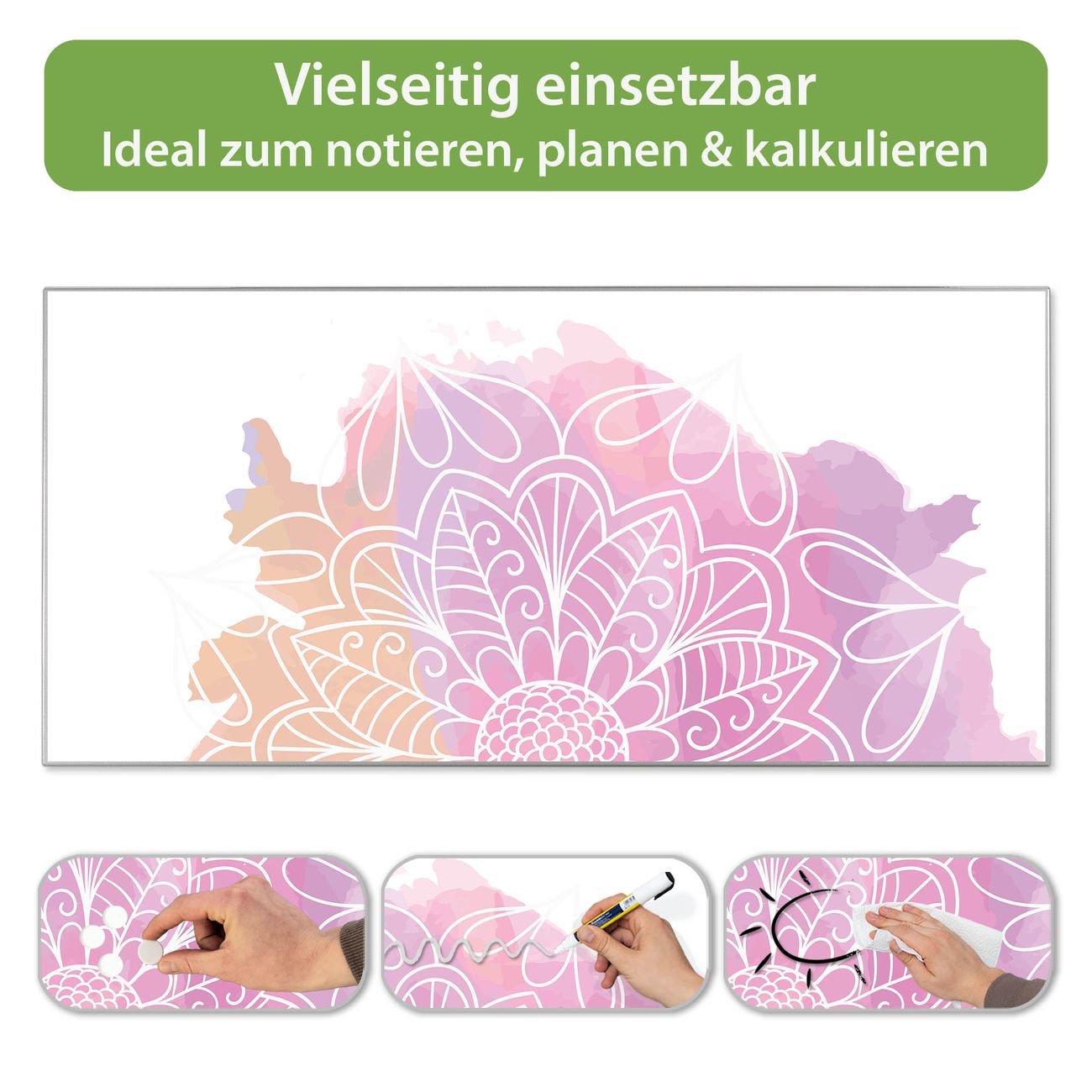 Metall Magnettafel beschreibbar 78x37cm Motiv Buntes Mandala