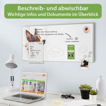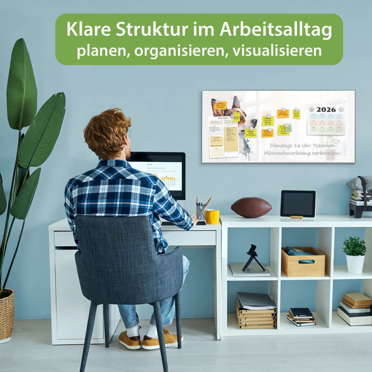 FUNKTION: Die banjado Magnettafel 78x37 cm im Design Motiv Corgi Aquarell vereint Funktionalität und modernes Wohndesign auf stilvolle Weise. Diese hochwertige Magnetwand aus Metall hilft Ihnen dabei, Notizen, Fotos, Termine, Einkaufslisten oder Rezepte übersichtlich zu organisieren. Als praktisches Memoboard sorgt sie für Struktur im Alltag und setzt gleichzeitig einen dekorativen Akzent an Ihrer Wand. DESIGN: Die Metalltafel besteht aus robustem, lackiertem Stahl und ist mit allen handelsüblichen Magneten nutzbar. Besonders praktisch ist die beschreibbare Oberfläche. Sie können die Magnettafel ganz einfach mit Kreidestiften beschriften und die Inhalte bei Bedarf mit einem feuchten Tuch wieder entfernen. So eignet sich das Memoboard ideal für Wochenpläne, Menüpläne, To Do Listen oder kreative Botschaften. DETAILS: Mit ihrem großzügigen Querformat von 78x37 cm bietet die Magnettafel ausreichend Platz für Ihre Organisation. Das Motiv Motiv Corgi Aquarell bringt eine warme, natürliche Optik in Küche, Flur, Büro oder Homeoffice und wirkt auch ohne Magnete oder Beschriftung wie ein modernes Wandbild. NUTZEN: Auf der Rückseite befinden sich vorgefertigte Löcher für eine schnelle und unkomplizierte Wandmontage. Jede banjado Magnettafel wird in Deutschland gefertigt und steht für Qualität, Langlebigkeit und liebevolle Verarbeitung. Dieses beschreibbare Memoboard ist die perfekte Kombination aus Metalltafel, Designobjekt und praktischer Magnetwand für Ihren Alltag. BANJADO: Wir sind ein kleines Team aus dem Herzen von Sachsen. Wir fertigen alle Artikel von Hand für Sie an, Sie erhalten keine preiswerte Importware. Auf Wunsch können Sie auch Ihr eigenes Foto auf die Magnettafel aufbringen, schreiben Sie uns an. Herzlichst, Ihr banjado-Team