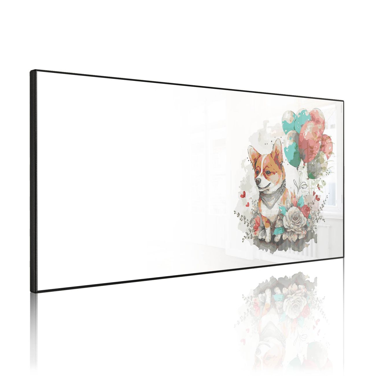 Metall Magnettafel beschreibbar 78x37cm Motiv Corgi mit Ballons Aquarell