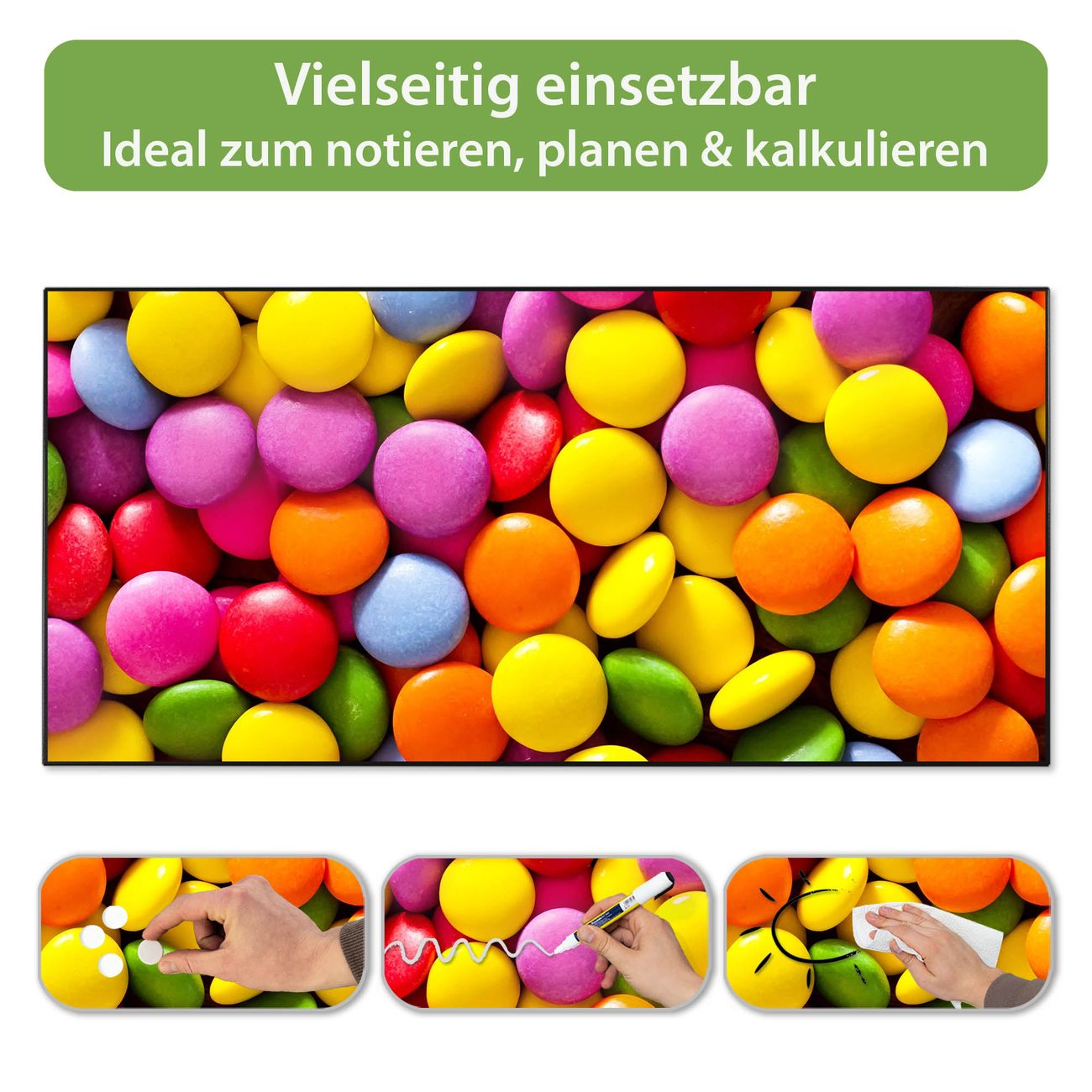 Metall Magnettafel beschreibbar 78x37cm Motiv Dragees