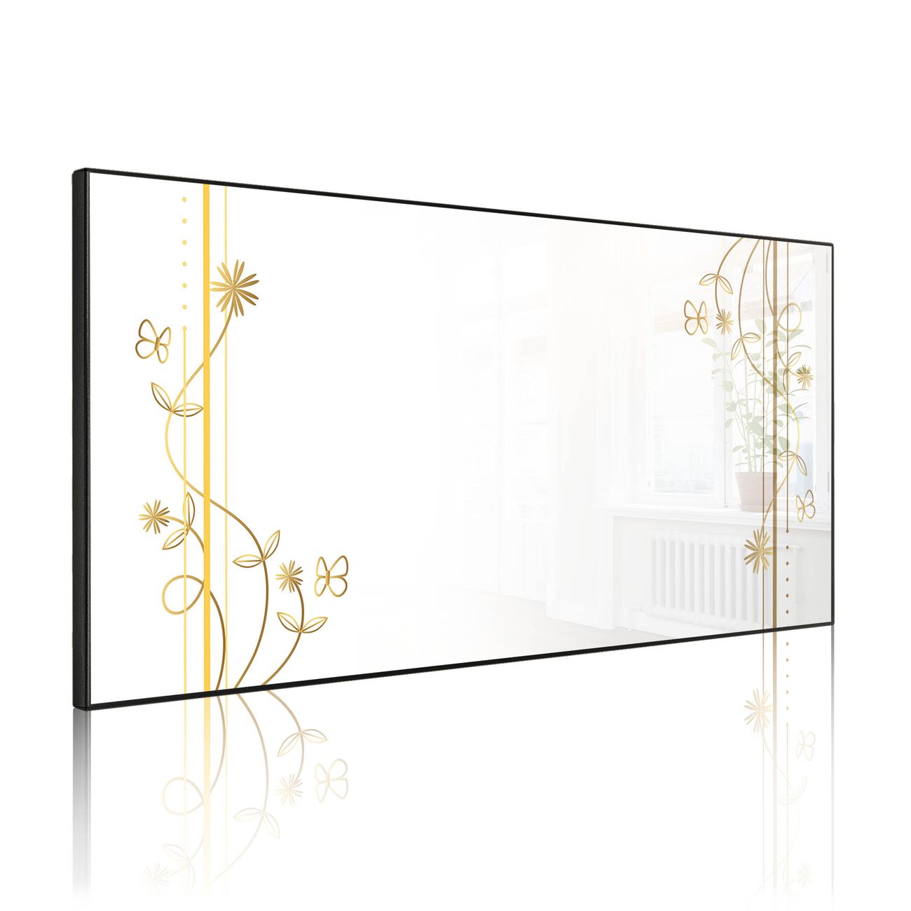 FUNKTION: Die banjado Magnettafel 78x37 cm im Design Motiv Floraler Rahmen 2 vereint Funktionalität und modernes Wohndesign auf stilvolle Weise. Diese hochwertige Magnetwand aus Metall hilft Ihnen dabei, Notizen, Fotos, Termine, Einkaufslisten oder Rezepte übersichtlich zu organisieren. Als praktisches Memoboard sorgt sie für Struktur im Alltag und setzt gleichzeitig einen dekorativen Akzent an Ihrer Wand. DESIGN: Die Metalltafel besteht aus robustem, lackiertem Stahl und ist mit allen handelsüblichen Magneten nutzbar. Besonders praktisch ist die beschreibbare Oberfläche. Sie können die Magnettafel ganz einfach mit Kreidestiften beschriften und die Inhalte bei Bedarf mit einem feuchten Tuch wieder entfernen. So eignet sich das Memoboard ideal für Wochenpläne, Menüpläne, To Do Listen oder kreative Botschaften. DETAILS: Mit ihrem großzügigen Querformat von 78x37 cm bietet die Magnettafel ausreichend Platz für Ihre Organisation. Das Motiv Motiv Floraler Rahmen 2 bringt eine warme, natürliche Optik in Küche, Flur, Büro oder Homeoffice und wirkt auch ohne Magnete oder Beschriftung wie ein modernes Wandbild. NUTZEN: Auf der Rückseite befinden sich vorgefertigte Löcher für eine schnelle und unkomplizierte Wandmontage. Jede banjado Magnettafel wird in Deutschland gefertigt und steht für Qualität, Langlebigkeit und liebevolle Verarbeitung. Dieses beschreibbare Memoboard ist die perfekte Kombination aus Metalltafel, Designobjekt und praktischer Magnetwand für Ihren Alltag. BANJADO: Wir sind ein kleines Team aus dem Herzen von Sachsen. Wir fertigen alle Artikel von Hand für Sie an, Sie erhalten keine preiswerte Importware. Auf Wunsch können Sie auch Ihr eigenes Foto auf die Magnettafel aufbringen, schreiben Sie uns an. Herzlichst, Ihr banjado-Team