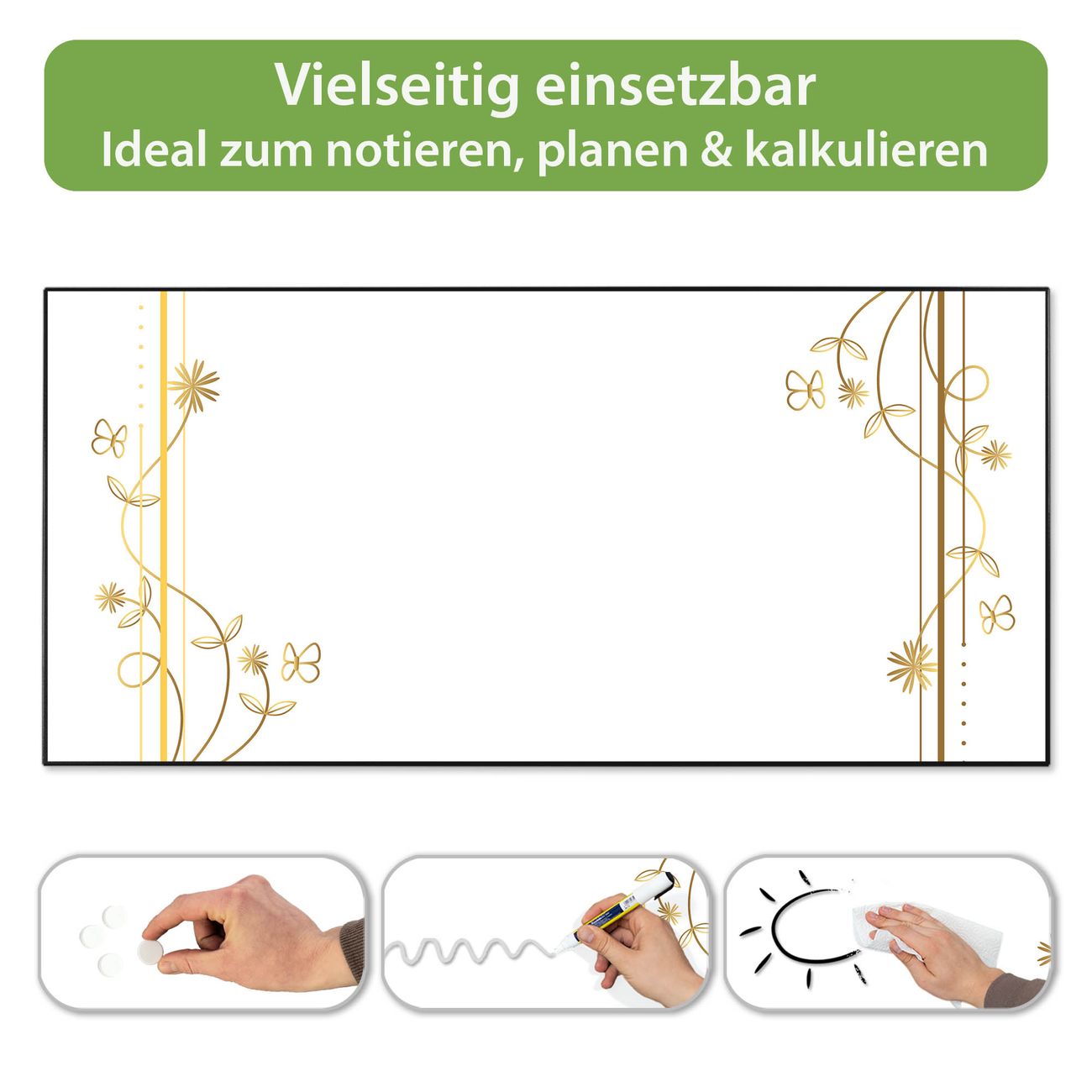 Metall Magnettafel beschreibbar 78x37cm Motiv Floraler Rahmen 2