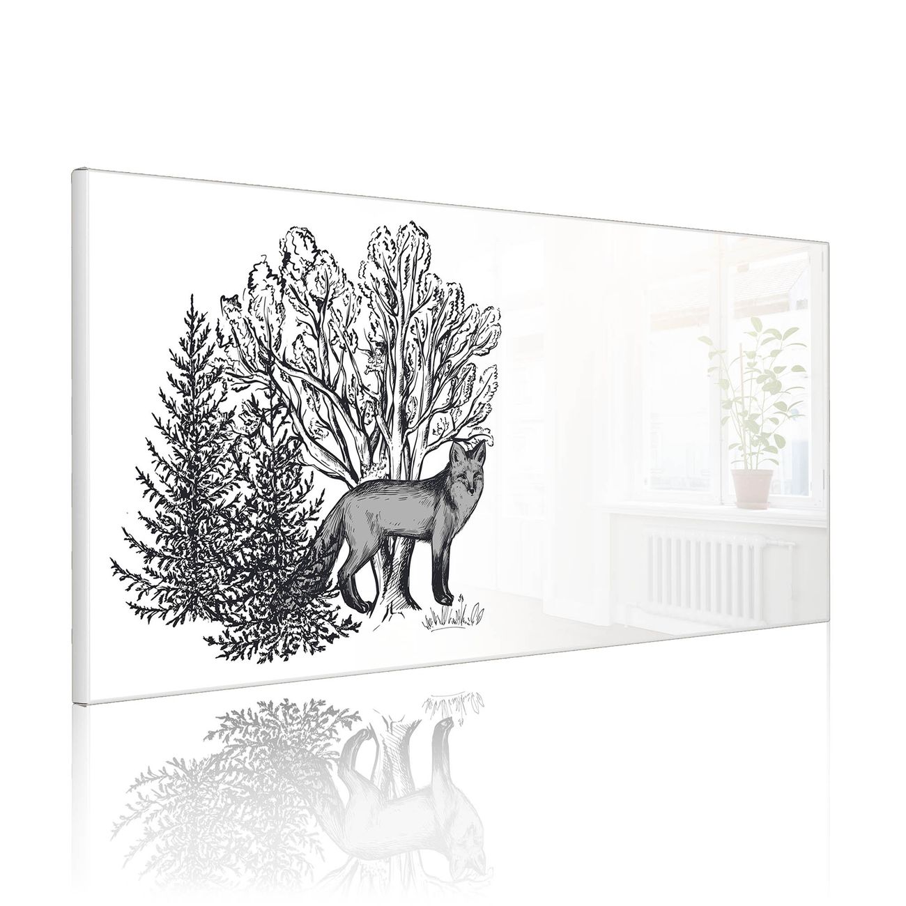 Metall Magnettafel beschreibbar 78x37cm Motiv Fuchs in Schwarz-Weiß