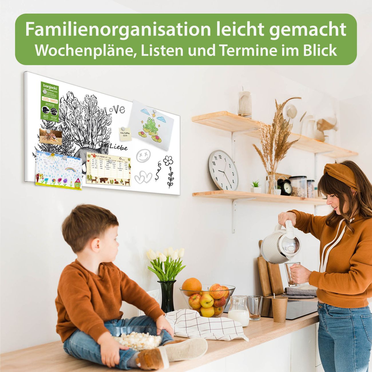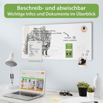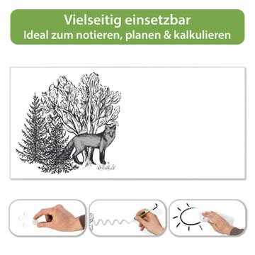 FUNKTION: Die banjado Magnettafel 78x37 cm im Design Motiv Fuchs in Schwarz-Weiß vereint Funktionalität und modernes Wohndesign auf stilvolle Weise. Diese hochwertige Magnetwand aus Metall hilft Ihnen dabei, Notizen, Fotos, Termine, Einkaufslisten oder Rezepte übersichtlich zu organisieren. Als praktisches Memoboard sorgt sie für Struktur im Alltag und setzt gleichzeitig einen dekorativen Akzent an Ihrer Wand. DESIGN: Die Metalltafel besteht aus robustem, lackiertem Stahl und ist mit allen handelsüblichen Magneten nutzbar. Besonders praktisch ist die beschreibbare Oberfläche. Sie können die Magnettafel ganz einfach mit Kreidestiften beschriften und die Inhalte bei Bedarf mit einem feuchten Tuch wieder entfernen. So eignet sich das Memoboard ideal für Wochenpläne, Menüpläne, To Do Listen oder kreative Botschaften. DETAILS: Mit ihrem großzügigen Querformat von 78x37 cm bietet die Magnettafel ausreichend Platz für Ihre Organisation. Das Motiv Motiv Fuchs in Schwarz-Weiß bringt eine warme, natürliche Optik in Küche, Flur, Büro oder Homeoffice und wirkt auch ohne Magnete oder Beschriftung wie ein modernes Wandbild. NUTZEN: Auf der Rückseite befinden sich vorgefertigte Löcher für eine schnelle und unkomplizierte Wandmontage. Jede banjado Magnettafel wird in Deutschland gefertigt und steht für Qualität, Langlebigkeit und liebevolle Verarbeitung. Dieses beschreibbare Memoboard ist die perfekte Kombination aus Metalltafel, Designobjekt und praktischer Magnetwand für Ihren Alltag. BANJADO: Wir sind ein kleines Team aus dem Herzen von Sachsen. Wir fertigen alle Artikel von Hand für Sie an, Sie erhalten keine preiswerte Importware. Auf Wunsch können Sie auch Ihr eigenes Foto auf die Magnettafel aufbringen, schreiben Sie uns an. Herzlichst, Ihr banjado-Team