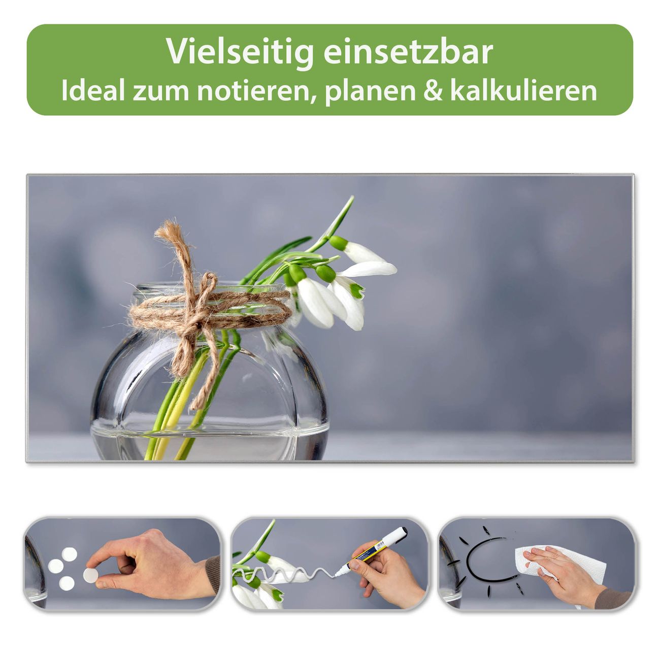 Metall Magnettafel beschreibbar 78x37cm Motiv Gänseblümchen im Glas