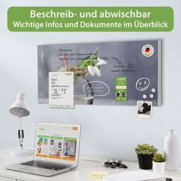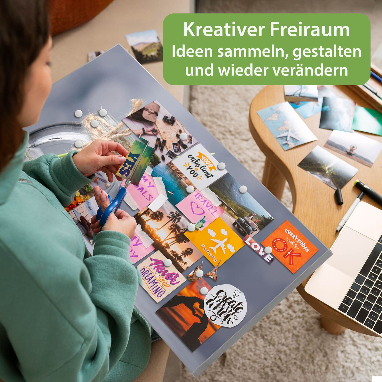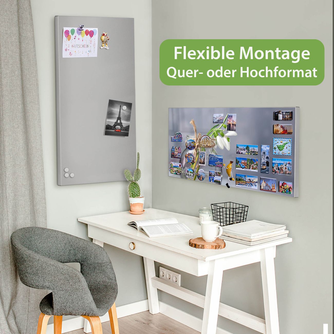 FUNKTION: Die banjado Magnettafel 78x37 cm im Design Motiv Gänseblümchen im Glas vereint Funktionalität und modernes Wohndesign auf stilvolle Weise. Diese hochwertige Magnetwand aus Metall hilft Ihnen dabei, Notizen, Fotos, Termine, Einkaufslisten oder Rezepte übersichtlich zu organisieren. Als praktisches Memoboard sorgt sie für Struktur im Alltag und setzt gleichzeitig einen dekorativen Akzent an Ihrer Wand. DESIGN: Die Metalltafel besteht aus robustem, lackiertem Stahl und ist mit allen handelsüblichen Magneten nutzbar. Besonders praktisch ist die beschreibbare Oberfläche. Sie können die Magnettafel ganz einfach mit Kreidestiften beschriften und die Inhalte bei Bedarf mit einem feuchten Tuch wieder entfernen. So eignet sich das Memoboard ideal für Wochenpläne, Menüpläne, To Do Listen oder kreative Botschaften. DETAILS: Mit ihrem großzügigen Querformat von 78x37 cm bietet die Magnettafel ausreichend Platz für Ihre Organisation. Das Motiv Motiv Gänseblümchen im Glas bringt eine warme, natürliche Optik in Küche, Flur, Büro oder Homeoffice und wirkt auch ohne Magnete oder Beschriftung wie ein modernes Wandbild. NUTZEN: Auf der Rückseite befinden sich vorgefertigte Löcher für eine schnelle und unkomplizierte Wandmontage. Jede banjado Magnettafel wird in Deutschland gefertigt und steht für Qualität, Langlebigkeit und liebevolle Verarbeitung. Dieses beschreibbare Memoboard ist die perfekte Kombination aus Metalltafel, Designobjekt und praktischer Magnetwand für Ihren Alltag. BANJADO: Wir sind ein kleines Team aus dem Herzen von Sachsen. Wir fertigen alle Artikel von Hand für Sie an, Sie erhalten keine preiswerte Importware. Auf Wunsch können Sie auch Ihr eigenes Foto auf die Magnettafel aufbringen, schreiben Sie uns an. Herzlichst, Ihr banjado-Team