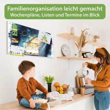 FUNKTION: Die banjado Magnettafel 78x37 cm im Design Motiv Galaktische Explosion vereint Funktionalität und modernes Wohndesign auf stilvolle Weise. Diese hochwertige Magnetwand aus Metall hilft Ihnen dabei, Notizen, Fotos, Termine, Einkaufslisten oder Rezepte übersichtlich zu organisieren. Als praktisches Memoboard sorgt sie für Struktur im Alltag und setzt gleichzeitig einen dekorativen Akzent an Ihrer Wand. DESIGN: Die Metalltafel besteht aus robustem, lackiertem Stahl und ist mit allen handelsüblichen Magneten nutzbar. Besonders praktisch ist die beschreibbare Oberfläche. Sie können die Magnettafel ganz einfach mit Kreidestiften beschriften und die Inhalte bei Bedarf mit einem feuchten Tuch wieder entfernen. So eignet sich das Memoboard ideal für Wochenpläne, Menüpläne, To Do Listen oder kreative Botschaften. DETAILS: Mit ihrem großzügigen Querformat von 78x37 cm bietet die Magnettafel ausreichend Platz für Ihre Organisation. Das Motiv Motiv Galaktische Explosion bringt eine warme, natürliche Optik in Küche, Flur, Büro oder Homeoffice und wirkt auch ohne Magnete oder Beschriftung wie ein modernes Wandbild. NUTZEN: Auf der Rückseite befinden sich vorgefertigte Löcher für eine schnelle und unkomplizierte Wandmontage. Jede banjado Magnettafel wird in Deutschland gefertigt und steht für Qualität, Langlebigkeit und liebevolle Verarbeitung. Dieses beschreibbare Memoboard ist die perfekte Kombination aus Metalltafel, Designobjekt und praktischer Magnetwand für Ihren Alltag. BANJADO: Wir sind ein kleines Team aus dem Herzen von Sachsen. Wir fertigen alle Artikel von Hand für Sie an, Sie erhalten keine preiswerte Importware. Auf Wunsch können Sie auch Ihr eigenes Foto auf die Magnettafel aufbringen, schreiben Sie uns an. Herzlichst, Ihr banjado-Team