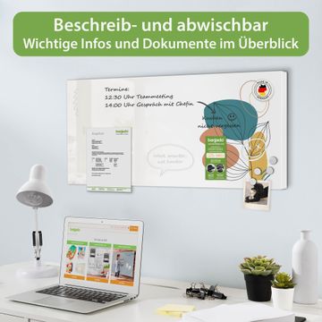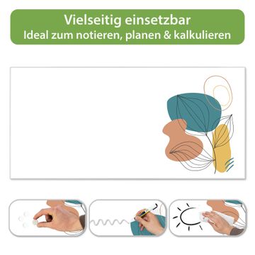 FUNKTION: Die banjado Magnettafel 78x37 cm im Design Motiv Geometrische Blätter Lineart vereint Funktionalität und modernes Wohndesign auf stilvolle Weise. Diese hochwertige Magnetwand aus Metall hilft Ihnen dabei, Notizen, Fotos, Termine, Einkaufslisten oder Rezepte übersichtlich zu organisieren. Als praktisches Memoboard sorgt sie für Struktur im Alltag und setzt gleichzeitig einen dekorativen Akzent an Ihrer Wand. DESIGN: Die Metalltafel besteht aus robustem, lackiertem Stahl und ist mit allen handelsüblichen Magneten nutzbar. Besonders praktisch ist die beschreibbare Oberfläche. Sie können die Magnettafel ganz einfach mit Kreidestiften beschriften und die Inhalte bei Bedarf mit einem feuchten Tuch wieder entfernen. So eignet sich das Memoboard ideal für Wochenpläne, Menüpläne, To Do Listen oder kreative Botschaften. DETAILS: Mit ihrem großzügigen Querformat von 78x37 cm bietet die Magnettafel ausreichend Platz für Ihre Organisation. Das Motiv Motiv Geometrische Blätter Lineart bringt eine warme, natürliche Optik in Küche, Flur, Büro oder Homeoffice und wirkt auch ohne Magnete oder Beschriftung wie ein modernes Wandbild. NUTZEN: Auf der Rückseite befinden sich vorgefertigte Löcher für eine schnelle und unkomplizierte Wandmontage. Jede banjado Magnettafel wird in Deutschland gefertigt und steht für Qualität, Langlebigkeit und liebevolle Verarbeitung. Dieses beschreibbare Memoboard ist die perfekte Kombination aus Metalltafel, Designobjekt und praktischer Magnetwand für Ihren Alltag. BANJADO: Wir sind ein kleines Team aus dem Herzen von Sachsen. Wir fertigen alle Artikel von Hand für Sie an, Sie erhalten keine preiswerte Importware. Auf Wunsch können Sie auch Ihr eigenes Foto auf die Magnettafel aufbringen, schreiben Sie uns an. Herzlichst, Ihr banjado-Team
