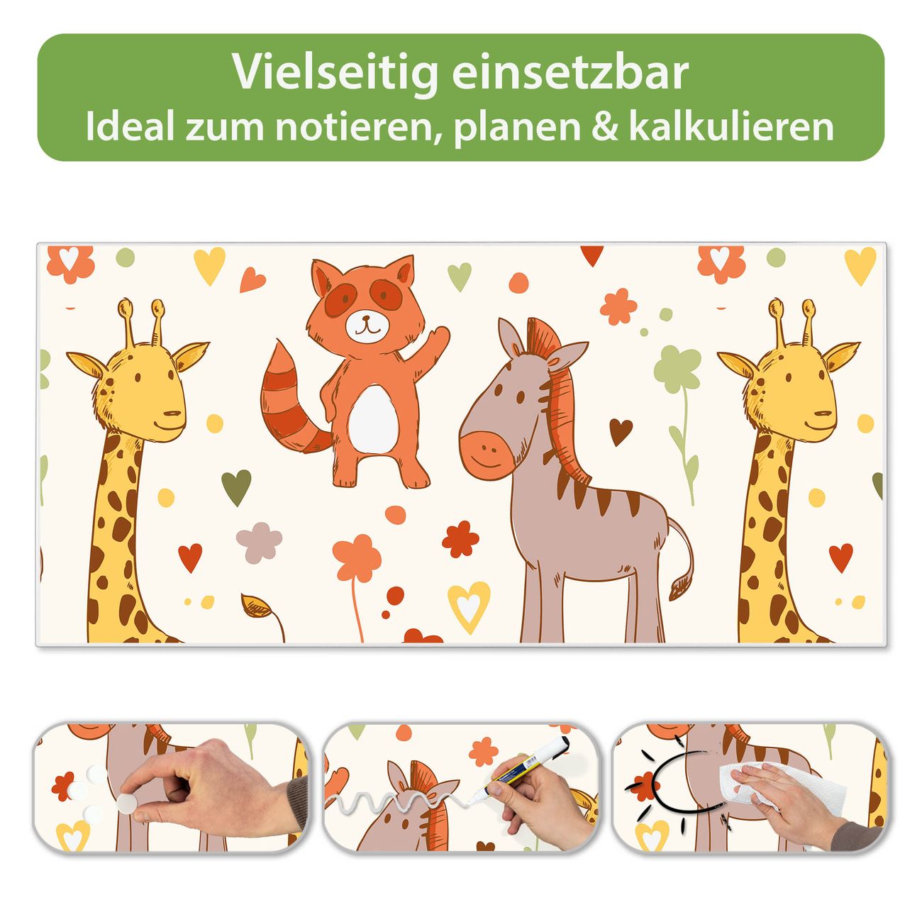 Metall Magnettafel beschreibbar 78x37cm Motiv Giraffe & Co