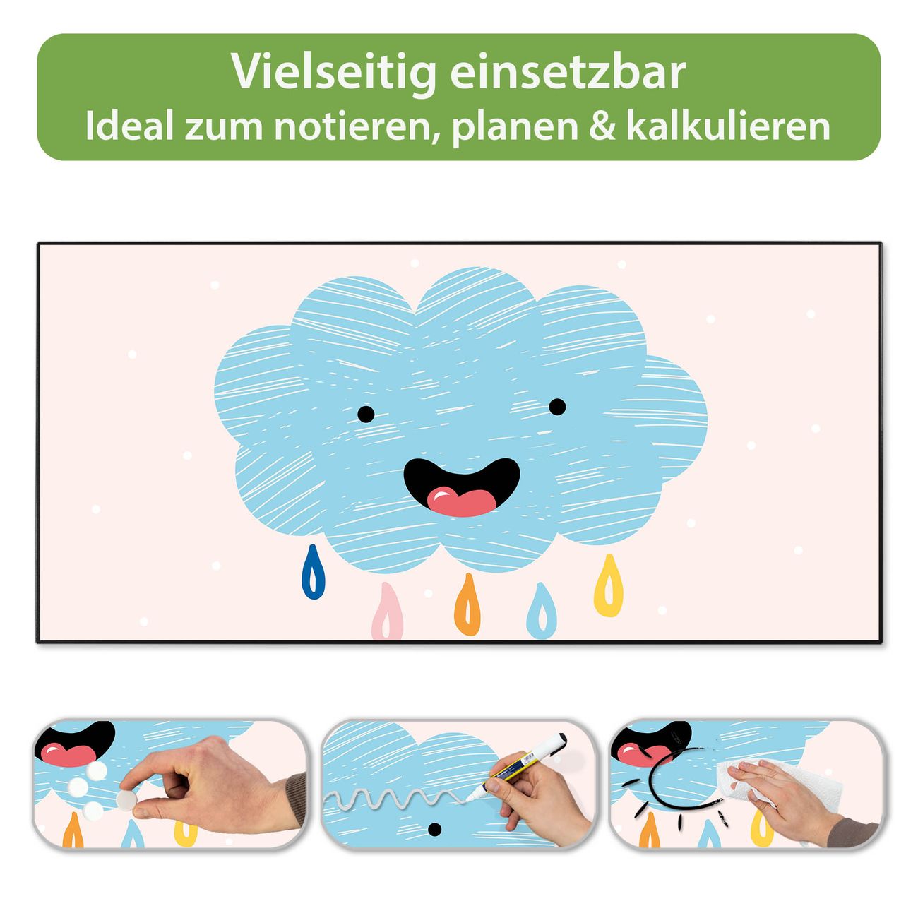 Metall Magnettafel beschreibbar 78x37cm Motiv glückliche Regenwolke
