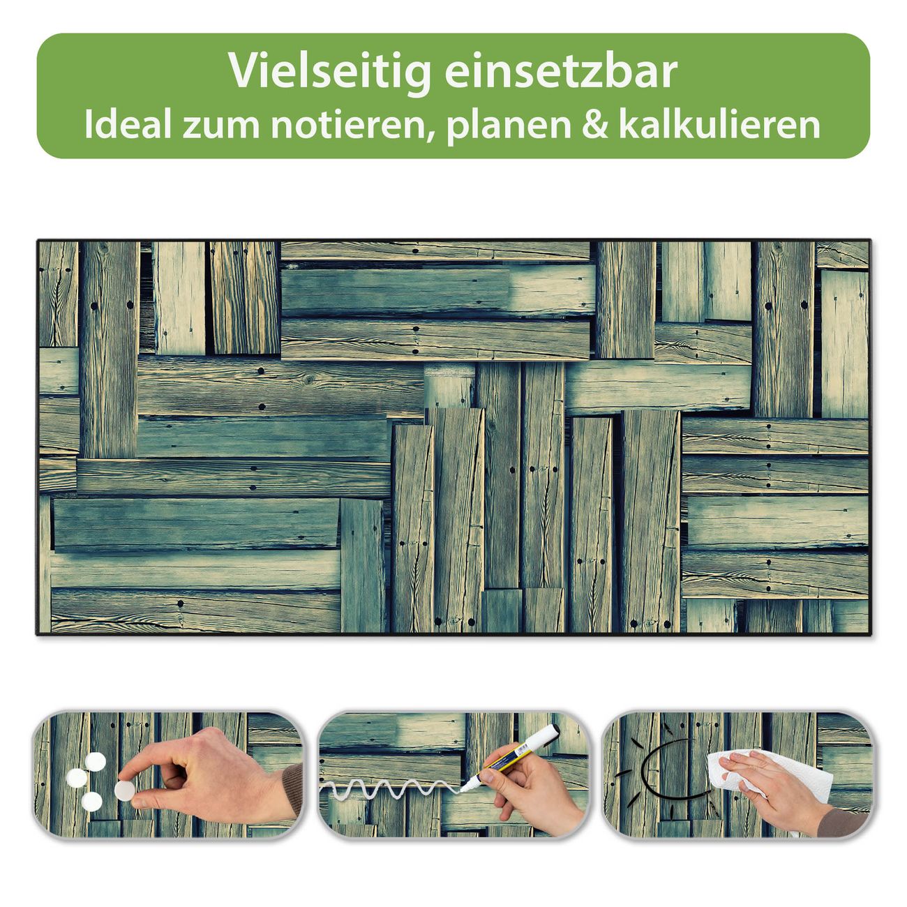 Metall Magnettafel beschreibbar 78x37cm Motiv Grüne Planken