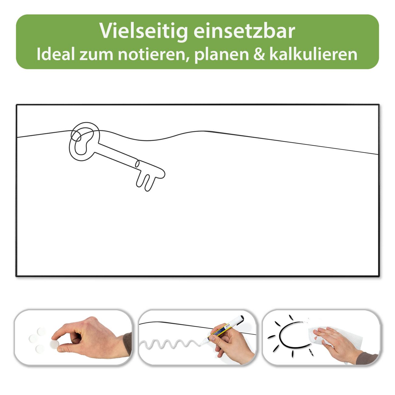 FUNKTION: Die banjado Magnettafel 78x37 cm im Design Motiv Hausherr Schlüssel 2 vereint Funktionalität und modernes Wohndesign auf stilvolle Weise. Diese hochwertige Magnetwand aus Metall hilft Ihnen dabei, Notizen, Fotos, Termine, Einkaufslisten oder Rezepte übersichtlich zu organisieren. Als praktisches Memoboard sorgt sie für Struktur im Alltag und setzt gleichzeitig einen dekorativen Akzent an Ihrer Wand. DESIGN: Die Metalltafel besteht aus robustem, lackiertem Stahl und ist mit allen handelsüblichen Magneten nutzbar. Besonders praktisch ist die beschreibbare Oberfläche. Sie können die Magnettafel ganz einfach mit Kreidestiften beschriften und die Inhalte bei Bedarf mit einem feuchten Tuch wieder entfernen. So eignet sich das Memoboard ideal für Wochenpläne, Menüpläne, To Do Listen oder kreative Botschaften. DETAILS: Mit ihrem großzügigen Querformat von 78x37 cm bietet die Magnettafel ausreichend Platz für Ihre Organisation. Das Motiv Motiv Hausherr Schlüssel 2 bringt eine warme, natürliche Optik in Küche, Flur, Büro oder Homeoffice und wirkt auch ohne Magnete oder Beschriftung wie ein modernes Wandbild. NUTZEN: Auf der Rückseite befinden sich vorgefertigte Löcher für eine schnelle und unkomplizierte Wandmontage. Jede banjado Magnettafel wird in Deutschland gefertigt und steht für Qualität, Langlebigkeit und liebevolle Verarbeitung. Dieses beschreibbare Memoboard ist die perfekte Kombination aus Metalltafel, Designobjekt und praktischer Magnetwand für Ihren Alltag. BANJADO: Wir sind ein kleines Team aus dem Herzen von Sachsen. Wir fertigen alle Artikel von Hand für Sie an, Sie erhalten keine preiswerte Importware. Auf Wunsch können Sie auch Ihr eigenes Foto auf die Magnettafel aufbringen, schreiben Sie uns an. Herzlichst, Ihr banjado-Team