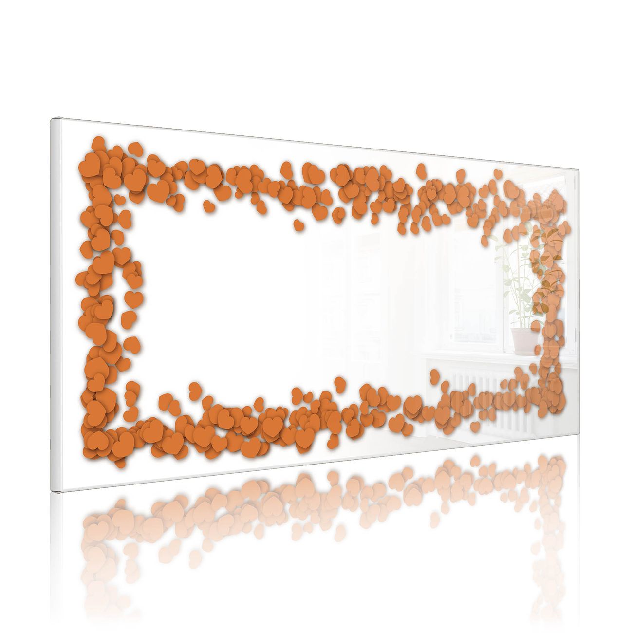Metall Magnettafel beschreibbar 78x37cm Motiv Herzrahmen in Orange