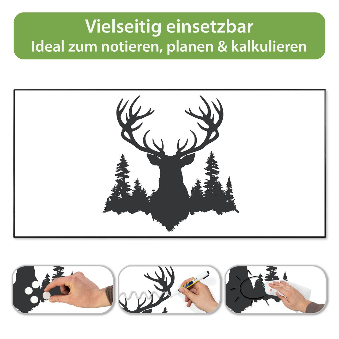 Metall Magnettafel beschreibbar 78x37cm Motiv Hirsch im Wald Silhouette