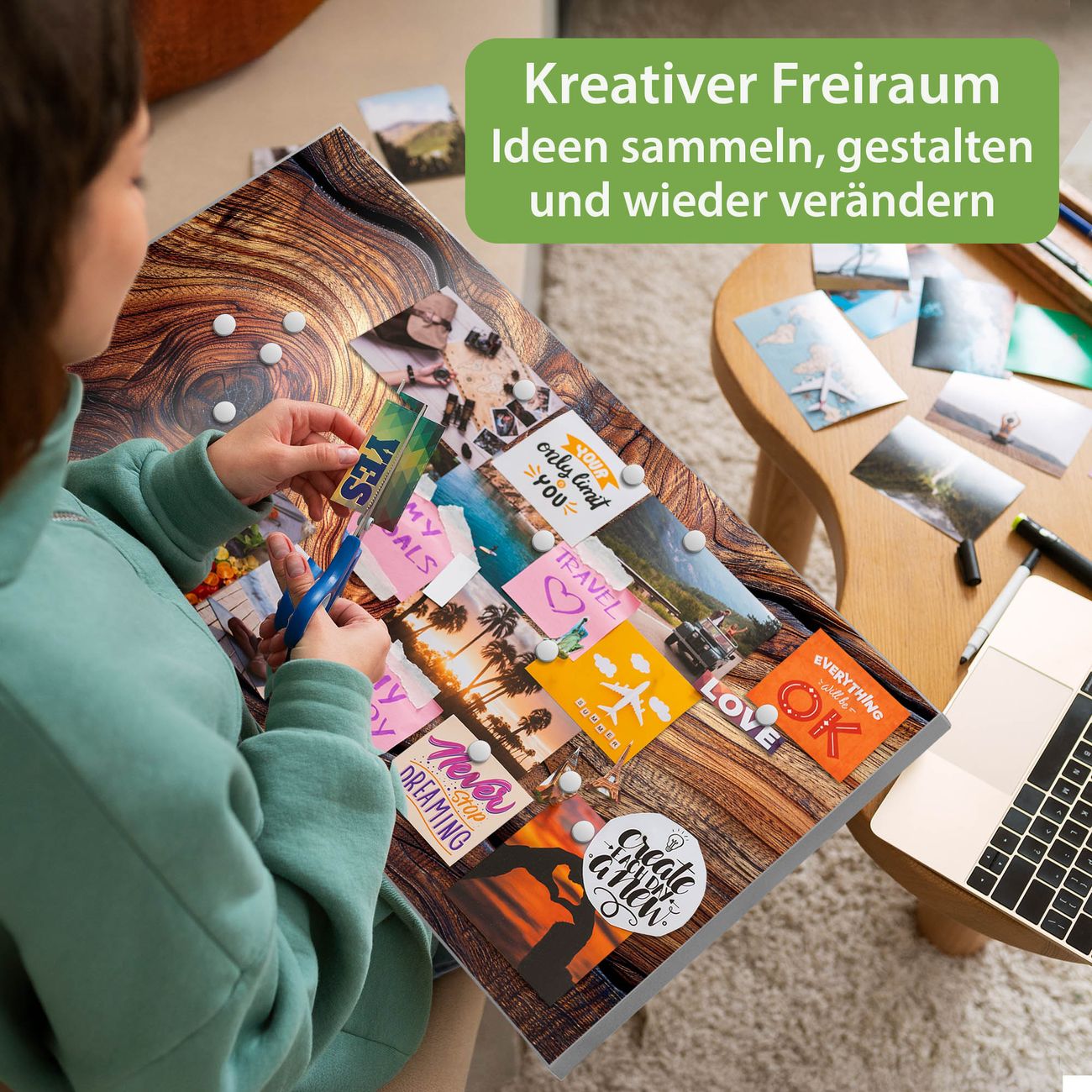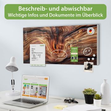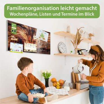 FUNKTION: Die banjado Magnettafel 78x37 cm im Design Motiv Holz Gemasert Kurve vereint Funktionalität und modernes Wohndesign auf stilvolle Weise. Diese hochwertige Magnetwand aus Metall hilft Ihnen dabei, Notizen, Fotos, Termine, Einkaufslisten oder Rezepte übersichtlich zu organisieren. Als praktisches Memoboard sorgt sie für Struktur im Alltag und setzt gleichzeitig einen dekorativen Akzent an Ihrer Wand. DESIGN: Die Metalltafel besteht aus robustem, lackiertem Stahl und ist mit allen handelsüblichen Magneten nutzbar. Besonders praktisch ist die beschreibbare Oberfläche. Sie können die Magnettafel ganz einfach mit Kreidestiften beschriften und die Inhalte bei Bedarf mit einem feuchten Tuch wieder entfernen. So eignet sich das Memoboard ideal für Wochenpläne, Menüpläne, To Do Listen oder kreative Botschaften. DETAILS: Mit ihrem großzügigen Querformat von 78x37 cm bietet die Magnettafel ausreichend Platz für Ihre Organisation. Das Motiv Motiv Holz Gemasert Kurve bringt eine warme, natürliche Optik in Küche, Flur, Büro oder Homeoffice und wirkt auch ohne Magnete oder Beschriftung wie ein modernes Wandbild. NUTZEN: Auf der Rückseite befinden sich vorgefertigte Löcher für eine schnelle und unkomplizierte Wandmontage. Jede banjado Magnettafel wird in Deutschland gefertigt und steht für Qualität, Langlebigkeit und liebevolle Verarbeitung. Dieses beschreibbare Memoboard ist die perfekte Kombination aus Metalltafel, Designobjekt und praktischer Magnetwand für Ihren Alltag. BANJADO: Wir sind ein kleines Team aus dem Herzen von Sachsen. Wir fertigen alle Artikel von Hand für Sie an, Sie erhalten keine preiswerte Importware. Auf Wunsch können Sie auch Ihr eigenes Foto auf die Magnettafel aufbringen, schreiben Sie uns an. Herzlichst, Ihr banjado-Team