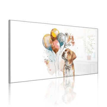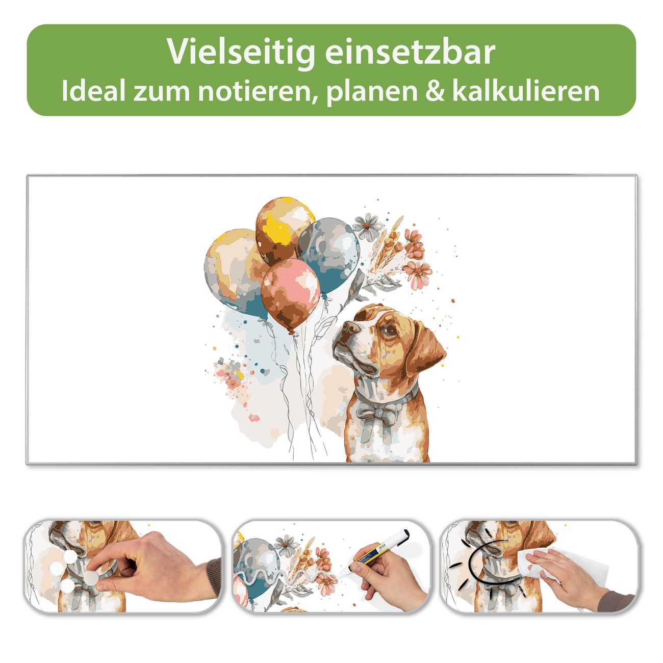 Metall Magnettafel beschreibbar 78x37cm Motiv Hund mit Ballons Aquarell
