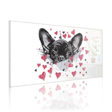 Metall Magnettafel beschreibbar 78x37cm Motiv Hund mit Herzen