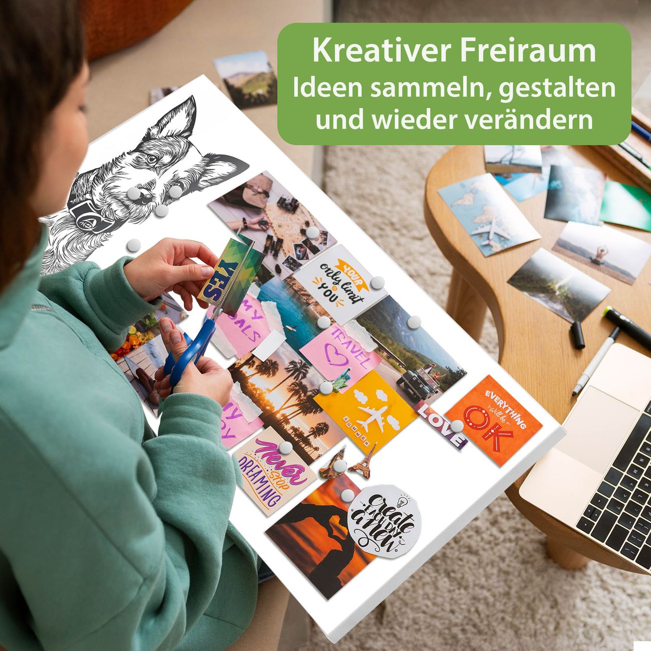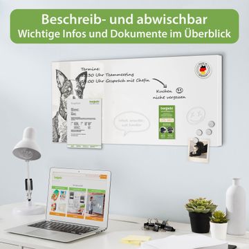 FUNKTION: Die banjado Magnettafel 78x37 cm im Design Motiv Hundeskizze 2 vereint Funktionalität und modernes Wohndesign auf stilvolle Weise. Diese hochwertige Magnetwand aus Metall hilft Ihnen dabei, Notizen, Fotos, Termine, Einkaufslisten oder Rezepte übersichtlich zu organisieren. Als praktisches Memoboard sorgt sie für Struktur im Alltag und setzt gleichzeitig einen dekorativen Akzent an Ihrer Wand. DESIGN: Die Metalltafel besteht aus robustem, lackiertem Stahl und ist mit allen handelsüblichen Magneten nutzbar. Besonders praktisch ist die beschreibbare Oberfläche. Sie können die Magnettafel ganz einfach mit Kreidestiften beschriften und die Inhalte bei Bedarf mit einem feuchten Tuch wieder entfernen. So eignet sich das Memoboard ideal für Wochenpläne, Menüpläne, To Do Listen oder kreative Botschaften. DETAILS: Mit ihrem großzügigen Querformat von 78x37 cm bietet die Magnettafel ausreichend Platz für Ihre Organisation. Das Motiv Motiv Hundeskizze 2 bringt eine warme, natürliche Optik in Küche, Flur, Büro oder Homeoffice und wirkt auch ohne Magnete oder Beschriftung wie ein modernes Wandbild. NUTZEN: Auf der Rückseite befinden sich vorgefertigte Löcher für eine schnelle und unkomplizierte Wandmontage. Jede banjado Magnettafel wird in Deutschland gefertigt und steht für Qualität, Langlebigkeit und liebevolle Verarbeitung. Dieses beschreibbare Memoboard ist die perfekte Kombination aus Metalltafel, Designobjekt und praktischer Magnetwand für Ihren Alltag. BANJADO: Wir sind ein kleines Team aus dem Herzen von Sachsen. Wir fertigen alle Artikel von Hand für Sie an, Sie erhalten keine preiswerte Importware. Auf Wunsch können Sie auch Ihr eigenes Foto auf die Magnettafel aufbringen, schreiben Sie uns an. Herzlichst, Ihr banjado-Team