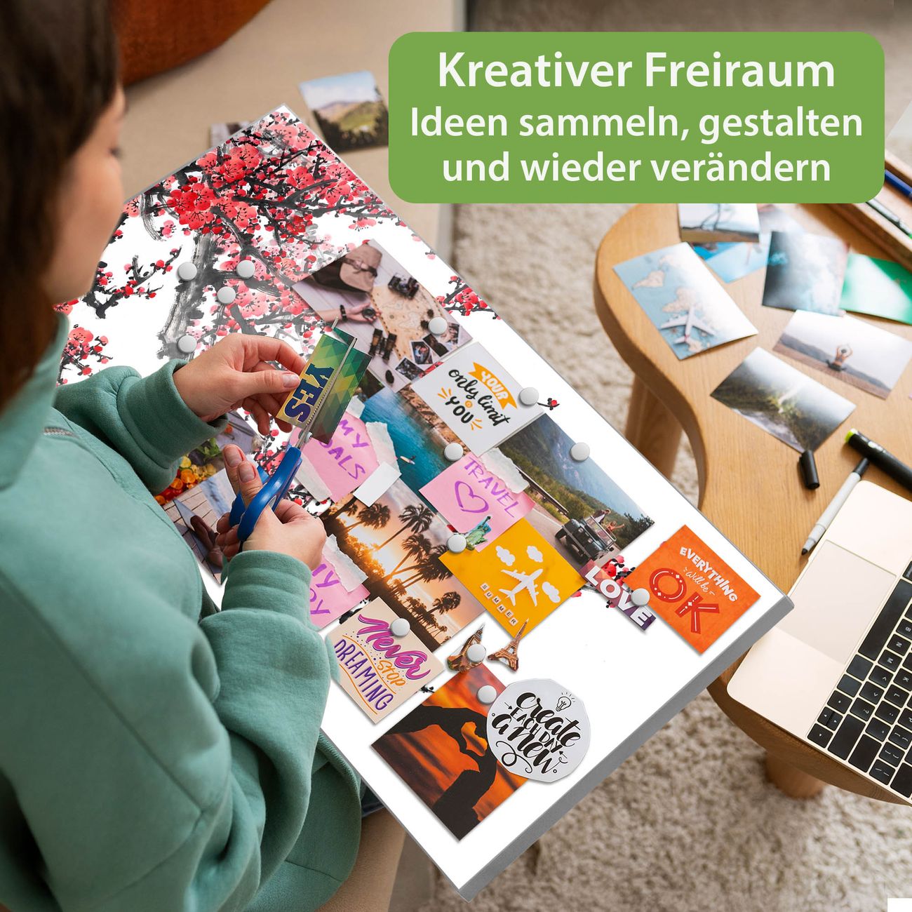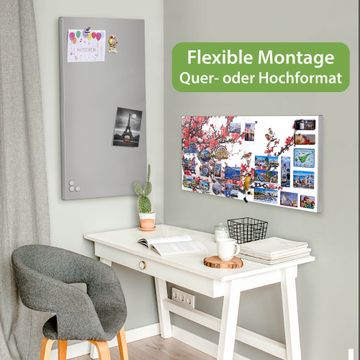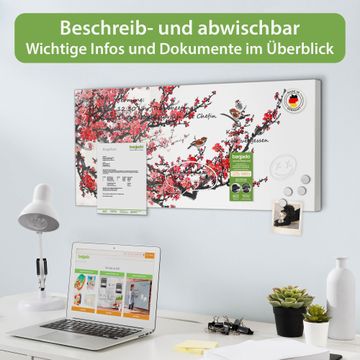 FUNKTION: Die banjado Magnettafel 78x37 cm im Design Motiv Japanische Blüten 1 vereint Funktionalität und modernes Wohndesign auf stilvolle Weise. Diese hochwertige Magnetwand aus Metall hilft Ihnen dabei, Notizen, Fotos, Termine, Einkaufslisten oder Rezepte übersichtlich zu organisieren. Als praktisches Memoboard sorgt sie für Struktur im Alltag und setzt gleichzeitig einen dekorativen Akzent an Ihrer Wand. DESIGN: Die Metalltafel besteht aus robustem, lackiertem Stahl und ist mit allen handelsüblichen Magneten nutzbar. Besonders praktisch ist die beschreibbare Oberfläche. Sie können die Magnettafel ganz einfach mit Kreidestiften beschriften und die Inhalte bei Bedarf mit einem feuchten Tuch wieder entfernen. So eignet sich das Memoboard ideal für Wochenpläne, Menüpläne, To Do Listen oder kreative Botschaften. DETAILS: Mit ihrem großzügigen Querformat von 78x37 cm bietet die Magnettafel ausreichend Platz für Ihre Organisation. Das Motiv Motiv Japanische Blüten 1 bringt eine warme, natürliche Optik in Küche, Flur, Büro oder Homeoffice und wirkt auch ohne Magnete oder Beschriftung wie ein modernes Wandbild. NUTZEN: Auf der Rückseite befinden sich vorgefertigte Löcher für eine schnelle und unkomplizierte Wandmontage. Jede banjado Magnettafel wird in Deutschland gefertigt und steht für Qualität, Langlebigkeit und liebevolle Verarbeitung. Dieses beschreibbare Memoboard ist die perfekte Kombination aus Metalltafel, Designobjekt und praktischer Magnetwand für Ihren Alltag. BANJADO: Wir sind ein kleines Team aus dem Herzen von Sachsen. Wir fertigen alle Artikel von Hand für Sie an, Sie erhalten keine preiswerte Importware. Auf Wunsch können Sie auch Ihr eigenes Foto auf die Magnettafel aufbringen, schreiben Sie uns an. Herzlichst, Ihr banjado-Team