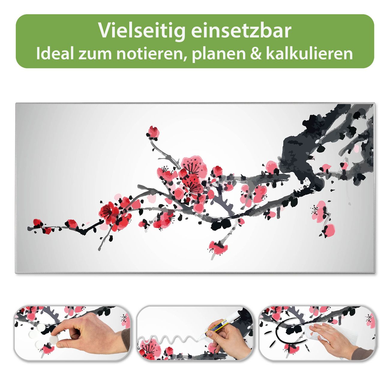 Metall Magnettafel beschreibbar 78x37cm Motiv Japanische Blüten 2
