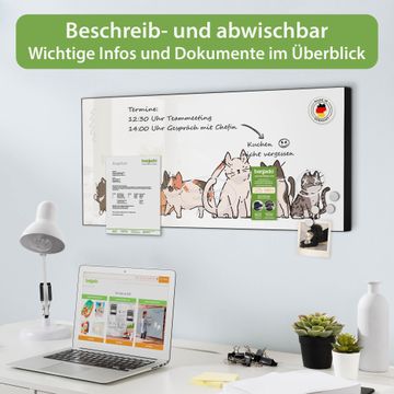 FUNKTION: Die banjado Magnettafel 78x37 cm im Design Motiv Katzengang vereint Funktionalität und modernes Wohndesign auf stilvolle Weise. Diese hochwertige Magnetwand aus Metall hilft Ihnen dabei, Notizen, Fotos, Termine, Einkaufslisten oder Rezepte übersichtlich zu organisieren. Als praktisches Memoboard sorgt sie für Struktur im Alltag und setzt gleichzeitig einen dekorativen Akzent an Ihrer Wand. DESIGN: Die Metalltafel besteht aus robustem, lackiertem Stahl und ist mit allen handelsüblichen Magneten nutzbar. Besonders praktisch ist die beschreibbare Oberfläche. Sie können die Magnettafel ganz einfach mit Kreidestiften beschriften und die Inhalte bei Bedarf mit einem feuchten Tuch wieder entfernen. So eignet sich das Memoboard ideal für Wochenpläne, Menüpläne, To Do Listen oder kreative Botschaften. DETAILS: Mit ihrem großzügigen Querformat von 78x37 cm bietet die Magnettafel ausreichend Platz für Ihre Organisation. Das Motiv Motiv Katzengang bringt eine warme, natürliche Optik in Küche, Flur, Büro oder Homeoffice und wirkt auch ohne Magnete oder Beschriftung wie ein modernes Wandbild. NUTZEN: Auf der Rückseite befinden sich vorgefertigte Löcher für eine schnelle und unkomplizierte Wandmontage. Jede banjado Magnettafel wird in Deutschland gefertigt und steht für Qualität, Langlebigkeit und liebevolle Verarbeitung. Dieses beschreibbare Memoboard ist die perfekte Kombination aus Metalltafel, Designobjekt und praktischer Magnetwand für Ihren Alltag. BANJADO: Wir sind ein kleines Team aus dem Herzen von Sachsen. Wir fertigen alle Artikel von Hand für Sie an, Sie erhalten keine preiswerte Importware. Auf Wunsch können Sie auch Ihr eigenes Foto auf die Magnettafel aufbringen, schreiben Sie uns an. Herzlichst, Ihr banjado-Team