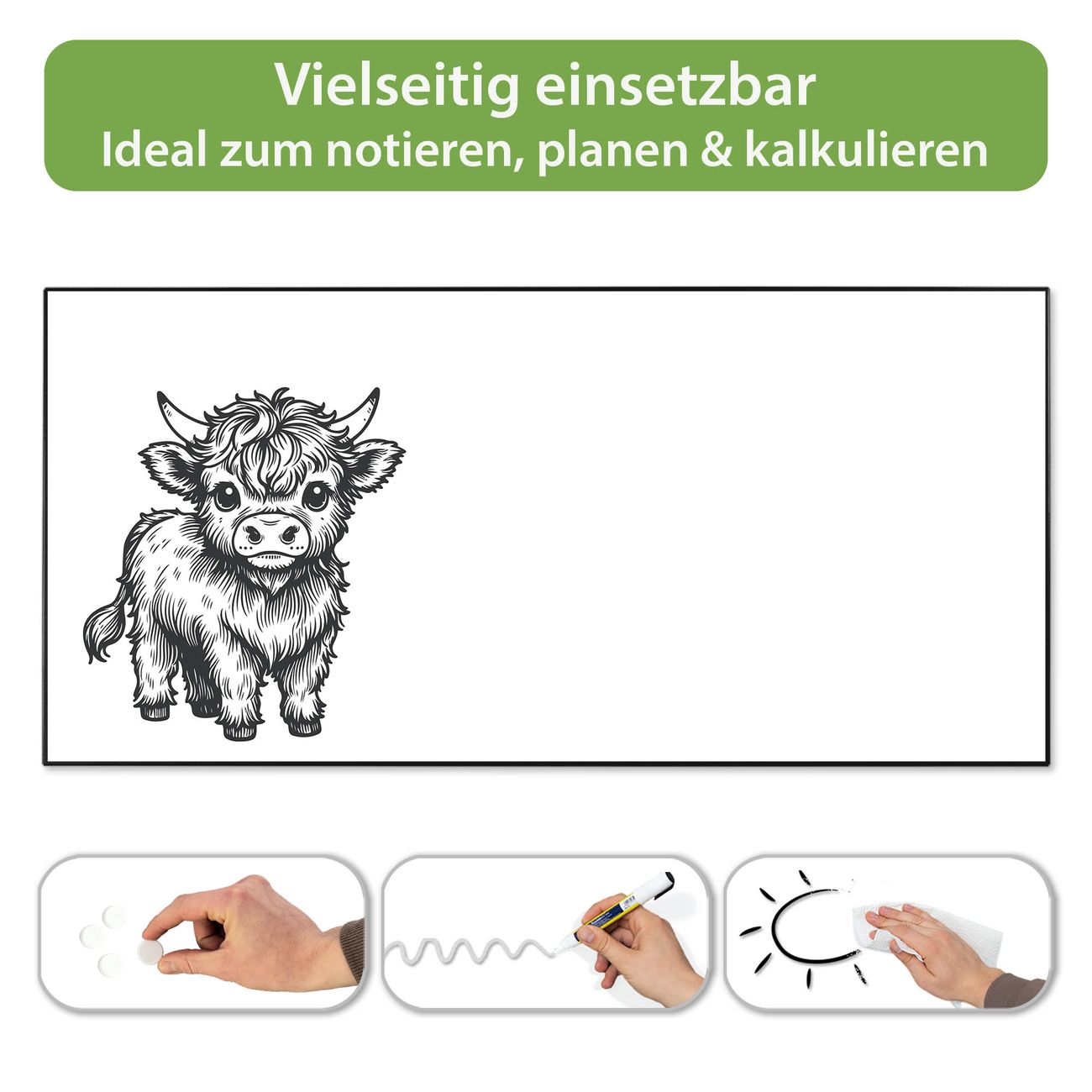 Metall Magnettafel beschreibbar 78x37cm Motiv Kleines Hochlandrind Zeichnung