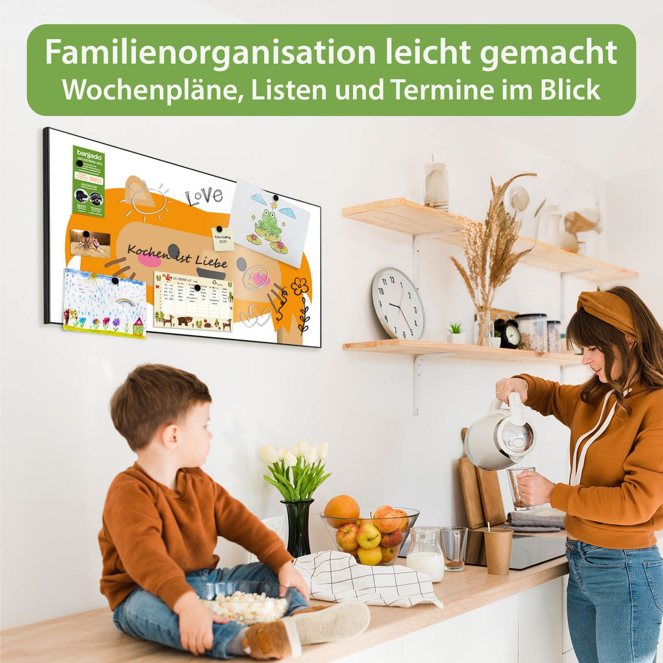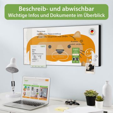 FUNKTION: Die banjado Magnettafel 78x37 cm im Design Motiv Löwe bilderrahmen vereint Funktionalität und modernes Wohndesign auf stilvolle Weise. Diese hochwertige Magnetwand aus Metall hilft Ihnen dabei, Notizen, Fotos, Termine, Einkaufslisten oder Rezepte übersichtlich zu organisieren. Als praktisches Memoboard sorgt sie für Struktur im Alltag und setzt gleichzeitig einen dekorativen Akzent an Ihrer Wand. DESIGN: Die Metalltafel besteht aus robustem, lackiertem Stahl und ist mit allen handelsüblichen Magneten nutzbar. Besonders praktisch ist die beschreibbare Oberfläche. Sie können die Magnettafel ganz einfach mit Kreidestiften beschriften und die Inhalte bei Bedarf mit einem feuchten Tuch wieder entfernen. So eignet sich das Memoboard ideal für Wochenpläne, Menüpläne, To Do Listen oder kreative Botschaften. DETAILS: Mit ihrem großzügigen Querformat von 78x37 cm bietet die Magnettafel ausreichend Platz für Ihre Organisation. Das Motiv Motiv Löwe bilderrahmen bringt eine warme, natürliche Optik in Küche, Flur, Büro oder Homeoffice und wirkt auch ohne Magnete oder Beschriftung wie ein modernes Wandbild. NUTZEN: Auf der Rückseite befinden sich vorgefertigte Löcher für eine schnelle und unkomplizierte Wandmontage. Jede banjado Magnettafel wird in Deutschland gefertigt und steht für Qualität, Langlebigkeit und liebevolle Verarbeitung. Dieses beschreibbare Memoboard ist die perfekte Kombination aus Metalltafel, Designobjekt und praktischer Magnetwand für Ihren Alltag. BANJADO: Wir sind ein kleines Team aus dem Herzen von Sachsen. Wir fertigen alle Artikel von Hand für Sie an, Sie erhalten keine preiswerte Importware. Auf Wunsch können Sie auch Ihr eigenes Foto auf die Magnettafel aufbringen, schreiben Sie uns an. Herzlichst, Ihr banjado-Team