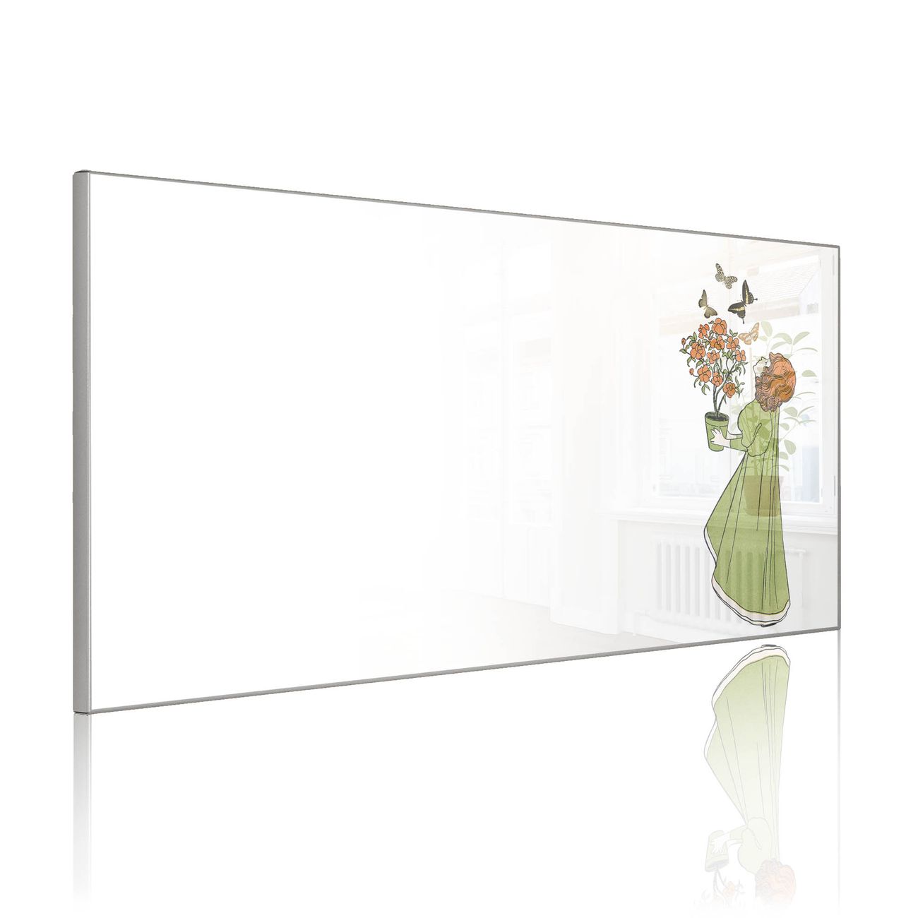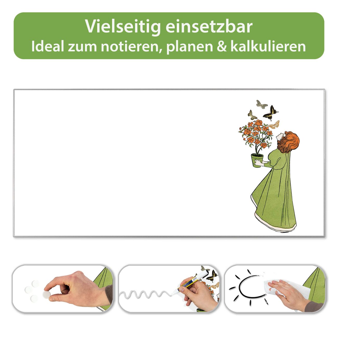 Metall Magnettafel beschreibbar 78x37cm Motiv Mädchen mit Blumentopf Vintage