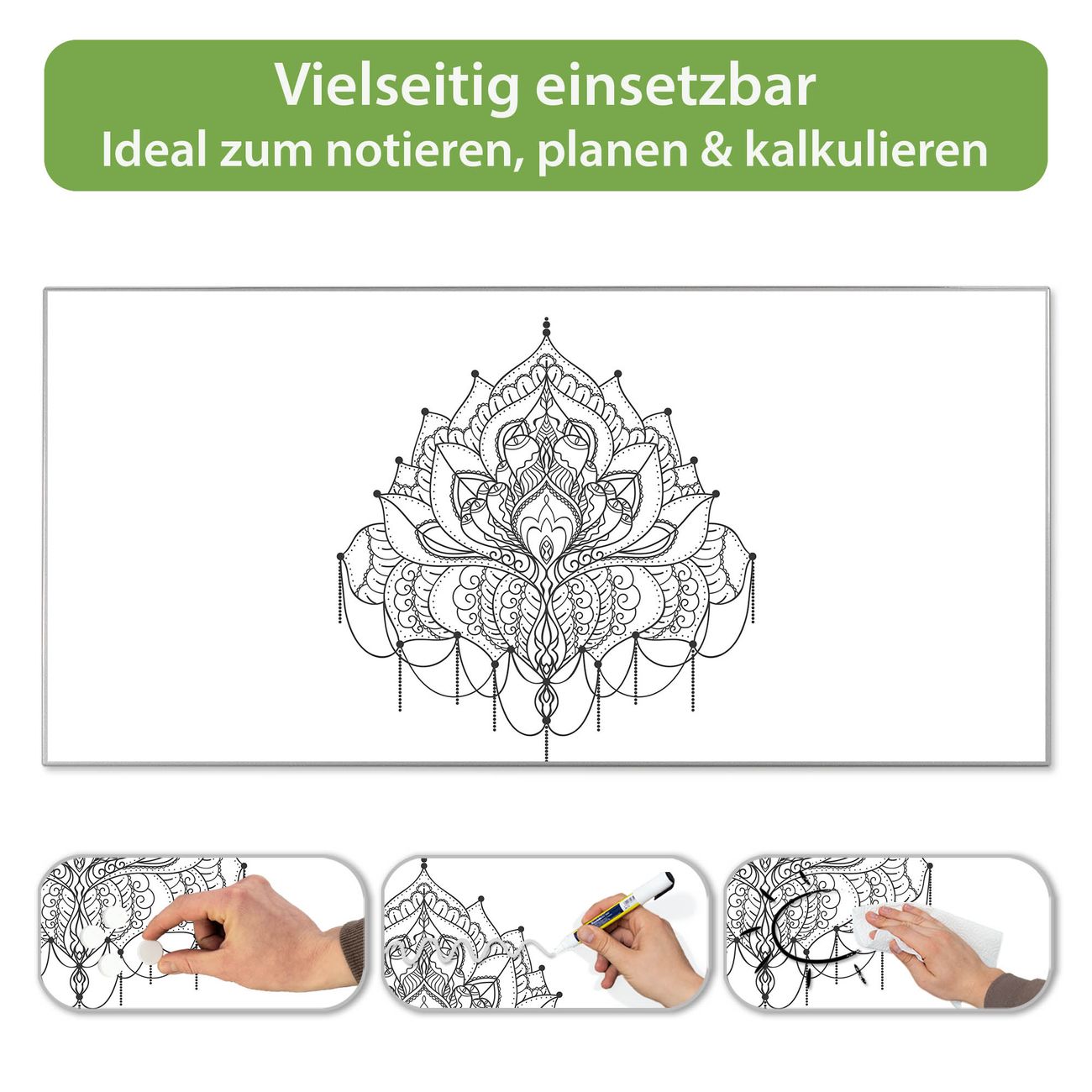Metall Magnettafel beschreibbar 78x37cm Motiv Mandala Muster