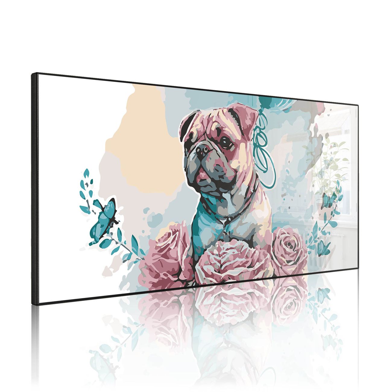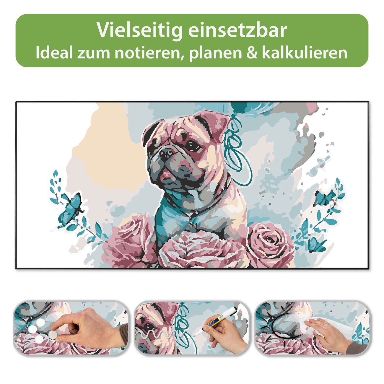 Metall Magnettafel beschreibbar 78x37cm Motiv Mops mit Ballons Aquarell