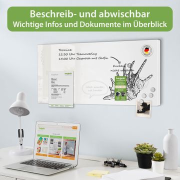 FUNKTION: Die banjado Magnettafel 78x37 cm im Design Motiv Muschel 9 vereint Funktionalität und modernes Wohndesign auf stilvolle Weise. Diese hochwertige Magnetwand aus Metall hilft Ihnen dabei, Notizen, Fotos, Termine, Einkaufslisten oder Rezepte übersichtlich zu organisieren. Als praktisches Memoboard sorgt sie für Struktur im Alltag und setzt gleichzeitig einen dekorativen Akzent an Ihrer Wand. DESIGN: Die Metalltafel besteht aus robustem, lackiertem Stahl und ist mit allen handelsüblichen Magneten nutzbar. Besonders praktisch ist die beschreibbare Oberfläche. Sie können die Magnettafel ganz einfach mit Kreidestiften beschriften und die Inhalte bei Bedarf mit einem feuchten Tuch wieder entfernen. So eignet sich das Memoboard ideal für Wochenpläne, Menüpläne, To Do Listen oder kreative Botschaften. DETAILS: Mit ihrem großzügigen Querformat von 78x37 cm bietet die Magnettafel ausreichend Platz für Ihre Organisation. Das Motiv Motiv Muschel 9 bringt eine warme, natürliche Optik in Küche, Flur, Büro oder Homeoffice und wirkt auch ohne Magnete oder Beschriftung wie ein modernes Wandbild. NUTZEN: Auf der Rückseite befinden sich vorgefertigte Löcher für eine schnelle und unkomplizierte Wandmontage. Jede banjado Magnettafel wird in Deutschland gefertigt und steht für Qualität, Langlebigkeit und liebevolle Verarbeitung. Dieses beschreibbare Memoboard ist die perfekte Kombination aus Metalltafel, Designobjekt und praktischer Magnetwand für Ihren Alltag. BANJADO: Wir sind ein kleines Team aus dem Herzen von Sachsen. Wir fertigen alle Artikel von Hand für Sie an, Sie erhalten keine preiswerte Importware. Auf Wunsch können Sie auch Ihr eigenes Foto auf die Magnettafel aufbringen, schreiben Sie uns an. Herzlichst, Ihr banjado-Team