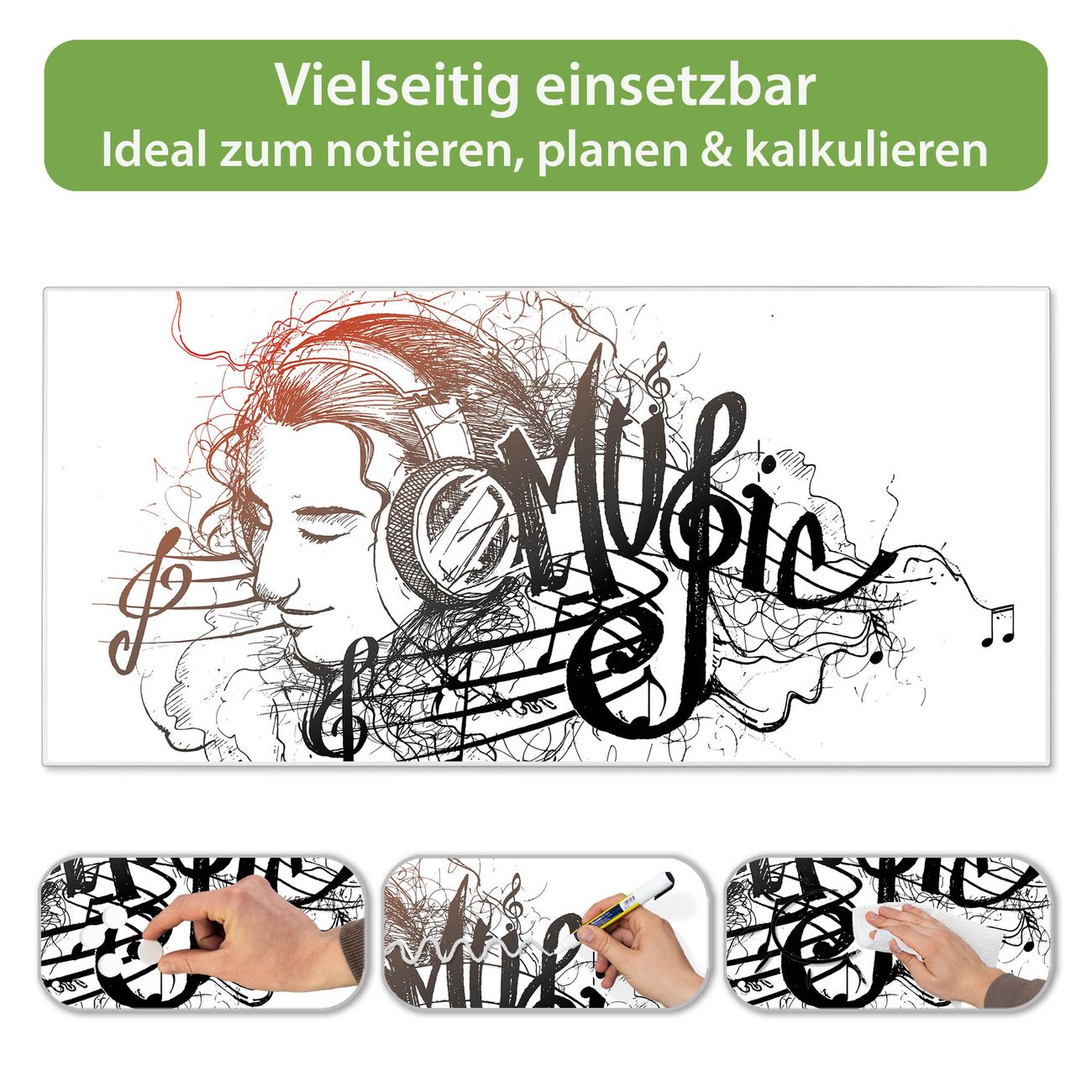 Metall Magnettafel beschreibbar 78x37cm Motiv Musikalische Illustration