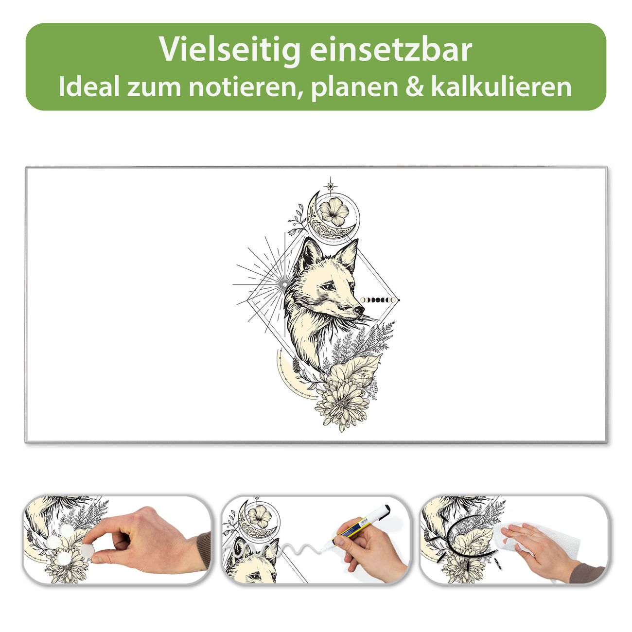 Metall Magnettafel beschreibbar 78x37cm Motiv Mystischer Fuchs