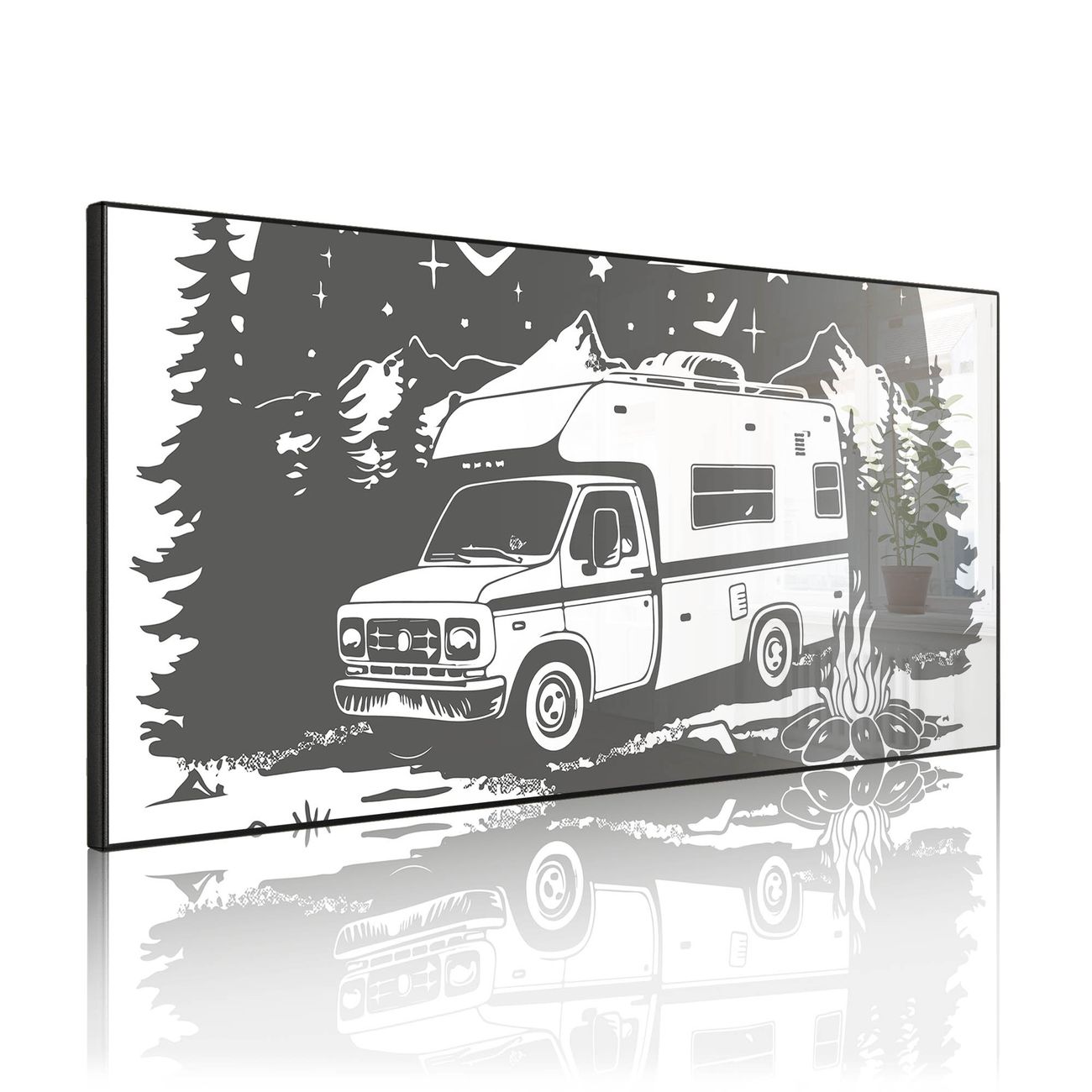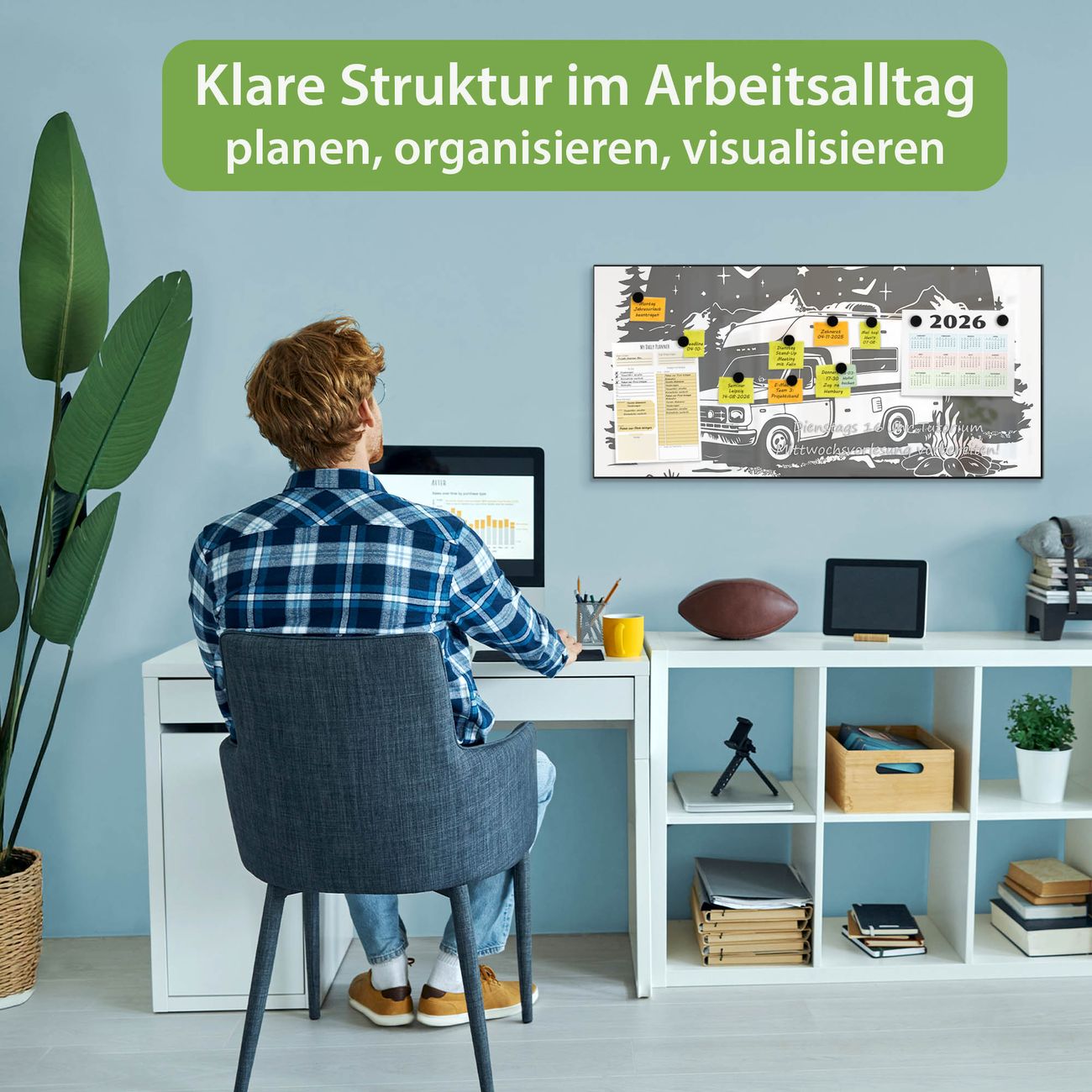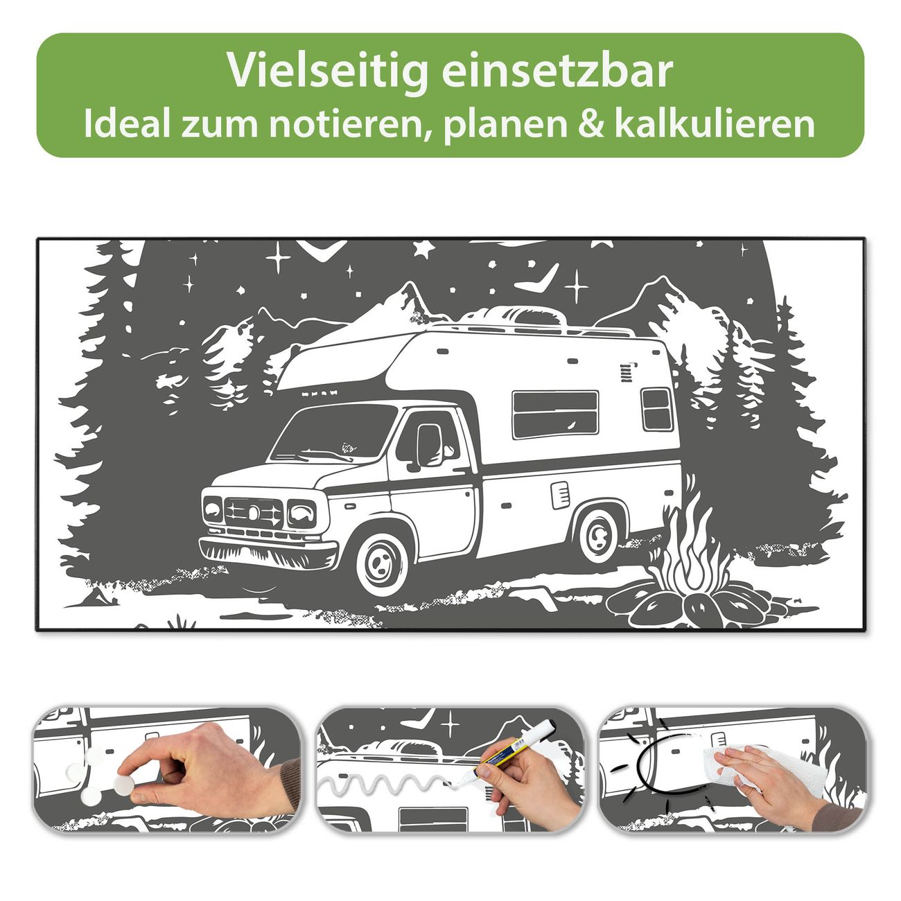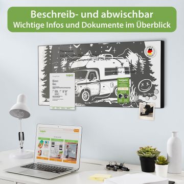 FUNKTION: Die banjado Magnettafel 78x37 cm im Design Motiv Nächtliches Campingabenteuer vereint Funktionalität und modernes Wohndesign auf stilvolle Weise. Diese hochwertige Magnetwand aus Metall hilft Ihnen dabei, Notizen, Fotos, Termine, Einkaufslisten oder Rezepte übersichtlich zu organisieren. Als praktisches Memoboard sorgt sie für Struktur im Alltag und setzt gleichzeitig einen dekorativen Akzent an Ihrer Wand. DESIGN: Die Metalltafel besteht aus robustem, lackiertem Stahl und ist mit allen handelsüblichen Magneten nutzbar. Besonders praktisch ist die beschreibbare Oberfläche. Sie können die Magnettafel ganz einfach mit Kreidestiften beschriften und die Inhalte bei Bedarf mit einem feuchten Tuch wieder entfernen. So eignet sich das Memoboard ideal für Wochenpläne, Menüpläne, To Do Listen oder kreative Botschaften. DETAILS: Mit ihrem großzügigen Querformat von 78x37 cm bietet die Magnettafel ausreichend Platz für Ihre Organisation. Das Motiv Motiv Nächtliches Campingabenteuer bringt eine warme, natürliche Optik in Küche, Flur, Büro oder Homeoffice und wirkt auch ohne Magnete oder Beschriftung wie ein modernes Wandbild. NUTZEN: Auf der Rückseite befinden sich vorgefertigte Löcher für eine schnelle und unkomplizierte Wandmontage. Jede banjado Magnettafel wird in Deutschland gefertigt und steht für Qualität, Langlebigkeit und liebevolle Verarbeitung. Dieses beschreibbare Memoboard ist die perfekte Kombination aus Metalltafel, Designobjekt und praktischer Magnetwand für Ihren Alltag. BANJADO: Wir sind ein kleines Team aus dem Herzen von Sachsen. Wir fertigen alle Artikel von Hand für Sie an, Sie erhalten keine preiswerte Importware. Auf Wunsch können Sie auch Ihr eigenes Foto auf die Magnettafel aufbringen, schreiben Sie uns an. Herzlichst, Ihr banjado-Team