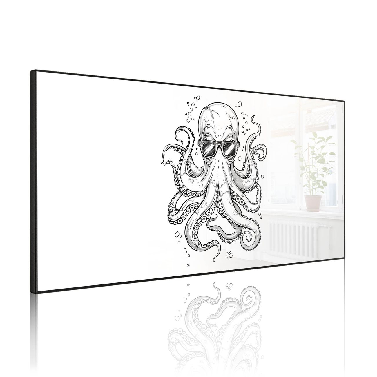 Metall Magnettafel beschreibbar 78x37cm Motiv Oktopus mit Brille