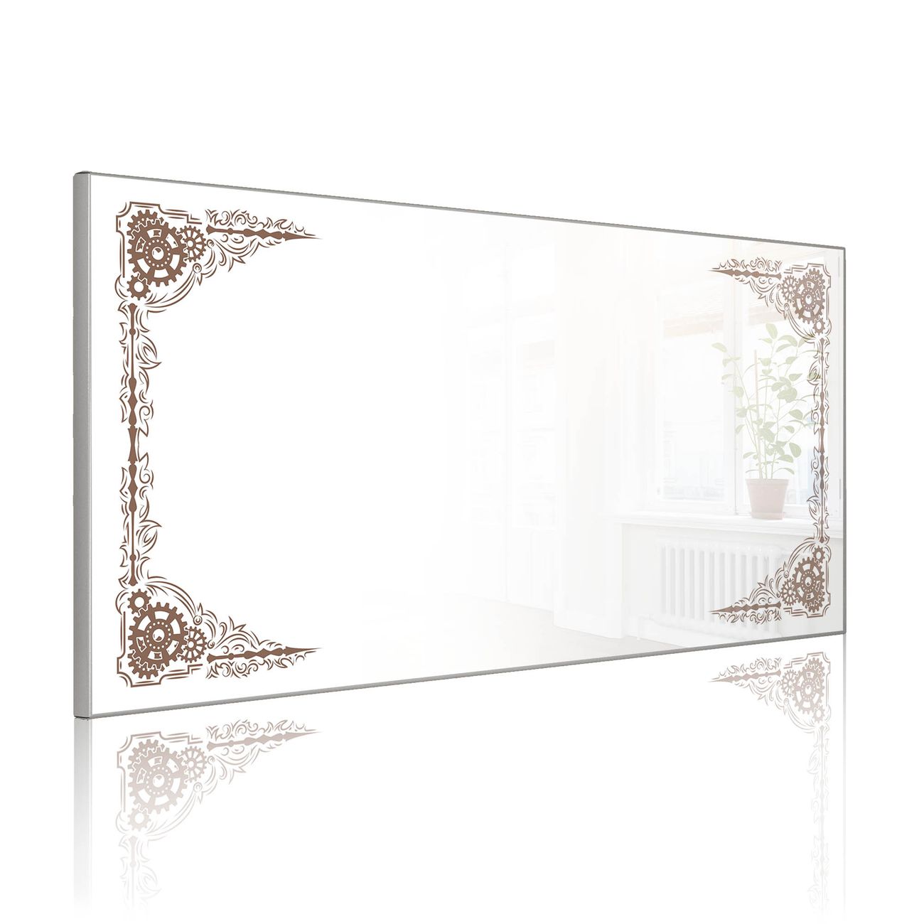 Metall Magnettafel beschreibbar 78x37cm Motiv Ornamentaler Zahnräderrahmen