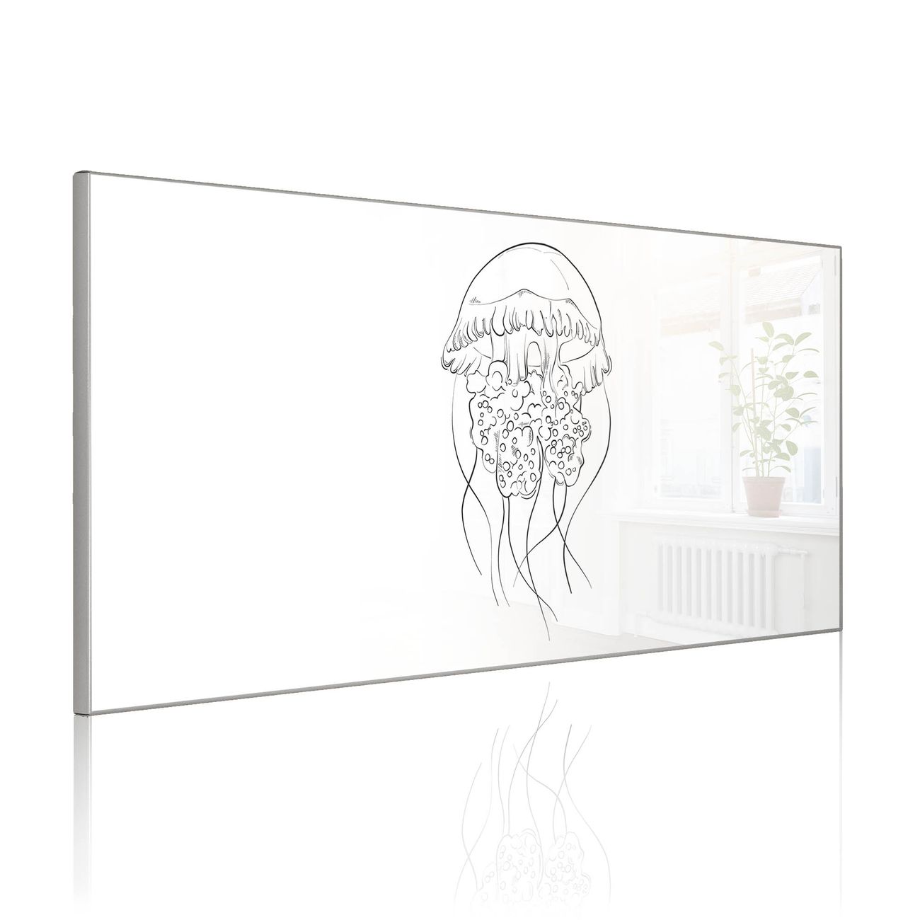 FUNKTION: Die banjado Magnettafel 78x37 cm im Design Motiv Qualle 5 vereint Funktionalität und modernes Wohndesign auf stilvolle Weise. Diese hochwertige Magnetwand aus Metall hilft Ihnen dabei, Notizen, Fotos, Termine, Einkaufslisten oder Rezepte übersichtlich zu organisieren. Als praktisches Memoboard sorgt sie für Struktur im Alltag und setzt gleichzeitig einen dekorativen Akzent an Ihrer Wand. DESIGN: Die Metalltafel besteht aus robustem, lackiertem Stahl und ist mit allen handelsüblichen Magneten nutzbar. Besonders praktisch ist die beschreibbare Oberfläche. Sie können die Magnettafel ganz einfach mit Kreidestiften beschriften und die Inhalte bei Bedarf mit einem feuchten Tuch wieder entfernen. So eignet sich das Memoboard ideal für Wochenpläne, Menüpläne, To Do Listen oder kreative Botschaften. DETAILS: Mit ihrem großzügigen Querformat von 78x37 cm bietet die Magnettafel ausreichend Platz für Ihre Organisation. Das Motiv Motiv Qualle 5 bringt eine warme, natürliche Optik in Küche, Flur, Büro oder Homeoffice und wirkt auch ohne Magnete oder Beschriftung wie ein modernes Wandbild. NUTZEN: Auf der Rückseite befinden sich vorgefertigte Löcher für eine schnelle und unkomplizierte Wandmontage. Jede banjado Magnettafel wird in Deutschland gefertigt und steht für Qualität, Langlebigkeit und liebevolle Verarbeitung. Dieses beschreibbare Memoboard ist die perfekte Kombination aus Metalltafel, Designobjekt und praktischer Magnetwand für Ihren Alltag. BANJADO: Wir sind ein kleines Team aus dem Herzen von Sachsen. Wir fertigen alle Artikel von Hand für Sie an, Sie erhalten keine preiswerte Importware. Auf Wunsch können Sie auch Ihr eigenes Foto auf die Magnettafel aufbringen, schreiben Sie uns an. Herzlichst, Ihr banjado-Team