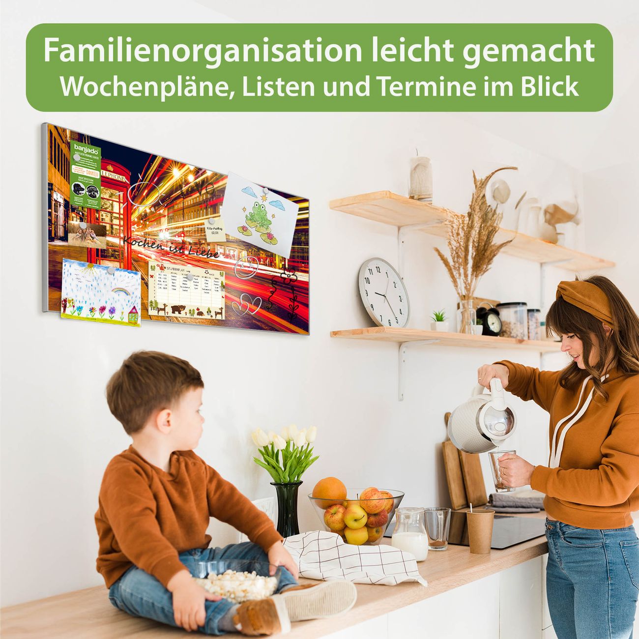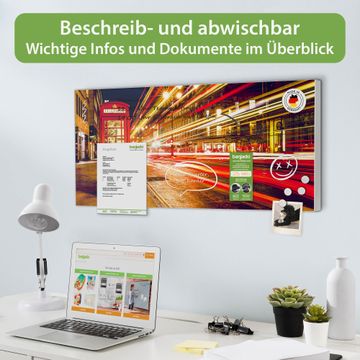 FUNKTION: Die banjado Magnettafel 78x37 cm im Design Motiv Red Telephone Trafic vereint Funktionalität und modernes Wohndesign auf stilvolle Weise. Diese hochwertige Magnetwand aus Metall hilft Ihnen dabei, Notizen, Fotos, Termine, Einkaufslisten oder Rezepte übersichtlich zu organisieren. Als praktisches Memoboard sorgt sie für Struktur im Alltag und setzt gleichzeitig einen dekorativen Akzent an Ihrer Wand. DESIGN: Die Metalltafel besteht aus robustem, lackiertem Stahl und ist mit allen handelsüblichen Magneten nutzbar. Besonders praktisch ist die beschreibbare Oberfläche. Sie können die Magnettafel ganz einfach mit Kreidestiften beschriften und die Inhalte bei Bedarf mit einem feuchten Tuch wieder entfernen. So eignet sich das Memoboard ideal für Wochenpläne, Menüpläne, To Do Listen oder kreative Botschaften. DETAILS: Mit ihrem großzügigen Querformat von 78x37 cm bietet die Magnettafel ausreichend Platz für Ihre Organisation. Das Motiv Motiv Red Telephone Trafic bringt eine warme, natürliche Optik in Küche, Flur, Büro oder Homeoffice und wirkt auch ohne Magnete oder Beschriftung wie ein modernes Wandbild. NUTZEN: Auf der Rückseite befinden sich vorgefertigte Löcher für eine schnelle und unkomplizierte Wandmontage. Jede banjado Magnettafel wird in Deutschland gefertigt und steht für Qualität, Langlebigkeit und liebevolle Verarbeitung. Dieses beschreibbare Memoboard ist die perfekte Kombination aus Metalltafel, Designobjekt und praktischer Magnetwand für Ihren Alltag. BANJADO: Wir sind ein kleines Team aus dem Herzen von Sachsen. Wir fertigen alle Artikel von Hand für Sie an, Sie erhalten keine preiswerte Importware. Auf Wunsch können Sie auch Ihr eigenes Foto auf die Magnettafel aufbringen, schreiben Sie uns an. Herzlichst, Ihr banjado-Team