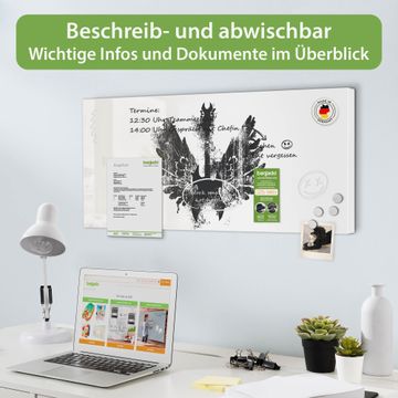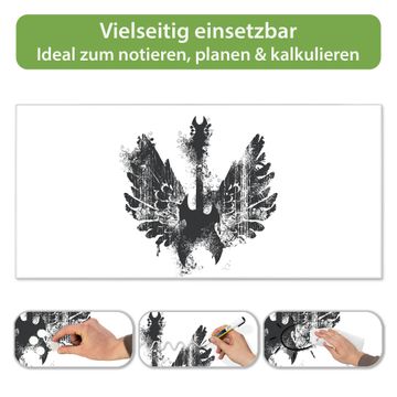 FUNKTION: Die banjado Magnettafel 78x37 cm im Design Motiv Rock Gitarre Flügel vereint Funktionalität und modernes Wohndesign auf stilvolle Weise. Diese hochwertige Magnetwand aus Metall hilft Ihnen dabei, Notizen, Fotos, Termine, Einkaufslisten oder Rezepte übersichtlich zu organisieren. Als praktisches Memoboard sorgt sie für Struktur im Alltag und setzt gleichzeitig einen dekorativen Akzent an Ihrer Wand. DESIGN: Die Metalltafel besteht aus robustem, lackiertem Stahl und ist mit allen handelsüblichen Magneten nutzbar. Besonders praktisch ist die beschreibbare Oberfläche. Sie können die Magnettafel ganz einfach mit Kreidestiften beschriften und die Inhalte bei Bedarf mit einem feuchten Tuch wieder entfernen. So eignet sich das Memoboard ideal für Wochenpläne, Menüpläne, To Do Listen oder kreative Botschaften. DETAILS: Mit ihrem großzügigen Querformat von 78x37 cm bietet die Magnettafel ausreichend Platz für Ihre Organisation. Das Motiv Motiv Rock Gitarre Flügel bringt eine warme, natürliche Optik in Küche, Flur, Büro oder Homeoffice und wirkt auch ohne Magnete oder Beschriftung wie ein modernes Wandbild. NUTZEN: Auf der Rückseite befinden sich vorgefertigte Löcher für eine schnelle und unkomplizierte Wandmontage. Jede banjado Magnettafel wird in Deutschland gefertigt und steht für Qualität, Langlebigkeit und liebevolle Verarbeitung. Dieses beschreibbare Memoboard ist die perfekte Kombination aus Metalltafel, Designobjekt und praktischer Magnetwand für Ihren Alltag. BANJADO: Wir sind ein kleines Team aus dem Herzen von Sachsen. Wir fertigen alle Artikel von Hand für Sie an, Sie erhalten keine preiswerte Importware. Auf Wunsch können Sie auch Ihr eigenes Foto auf die Magnettafel aufbringen, schreiben Sie uns an. Herzlichst, Ihr banjado-Team
